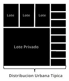 UNIDADES LOCALES. Son unidades de acceso abierto y de pequeño tamaño, de menos de 5 ha. La trama suele ser rectangular, la parcela tiene un tamaño de entre 200m² y 300m² y las densidades rondan las 20-30 viviendas/ha. Suelen estar en situación periférica y, a menudo, alejadas de las vías principales. No tienen equipamiento. Suponen un 25% del total de unidades.