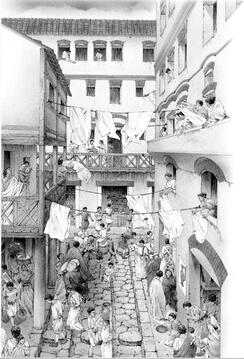 Los lugares urbanos eran pequeños ámbitos de desarrollo de una arquitectura civil, todavía incipiente, donde edificios civiles se vinculaban a un espacio público inmediato que recordaba a los tiempos medievales y sus plazas o a los propios orígenes de la ciudad.