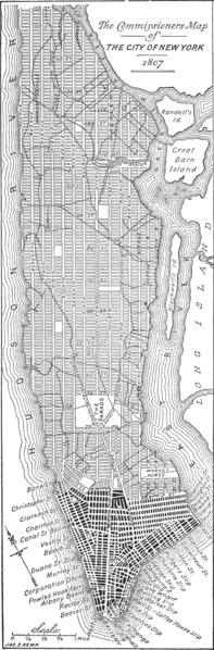En 1807, John Randel Jr., Gouverneur Morris, John Rutherfurd y Simeon De Witt diseñaron el "plan de los comisionados" o "Commissioners Plan". éste era un plan urbanístico de la ciudad de Nueva York y es considerado "el documento más importante en el desarrollo de la ciudad de Nueva York. Ha sido descrito como abarcando la predilección republicana por el control y el equilibrio...[y] la desconfianza a la naturaleza. Desde sus primeros días el plan fue criticado por su monotonía y rigidez, en comparación con los patrones de calles irregulares de las ciudades más antiguas; pero en los últimos años se le ha visto más favorablemente por parte de los planificadores urbanos.
