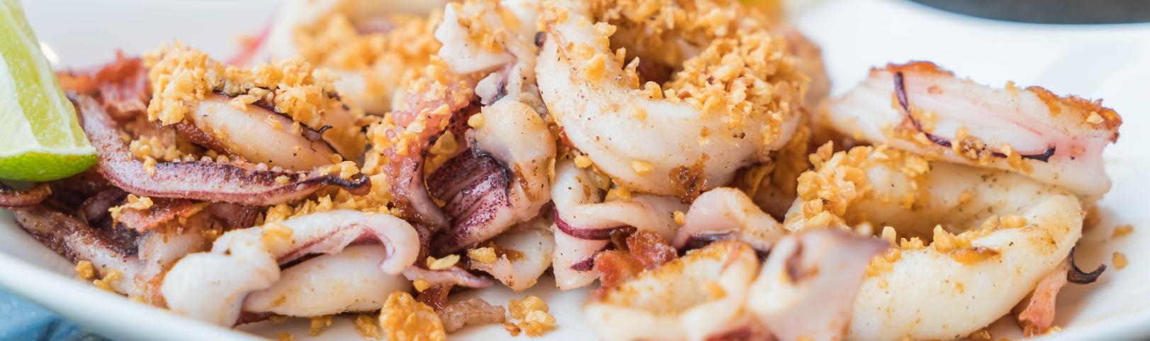 Camarão, Lula e Isca de Peixe À Milanesa, Bolinhos de Camarão e Fritas. 2