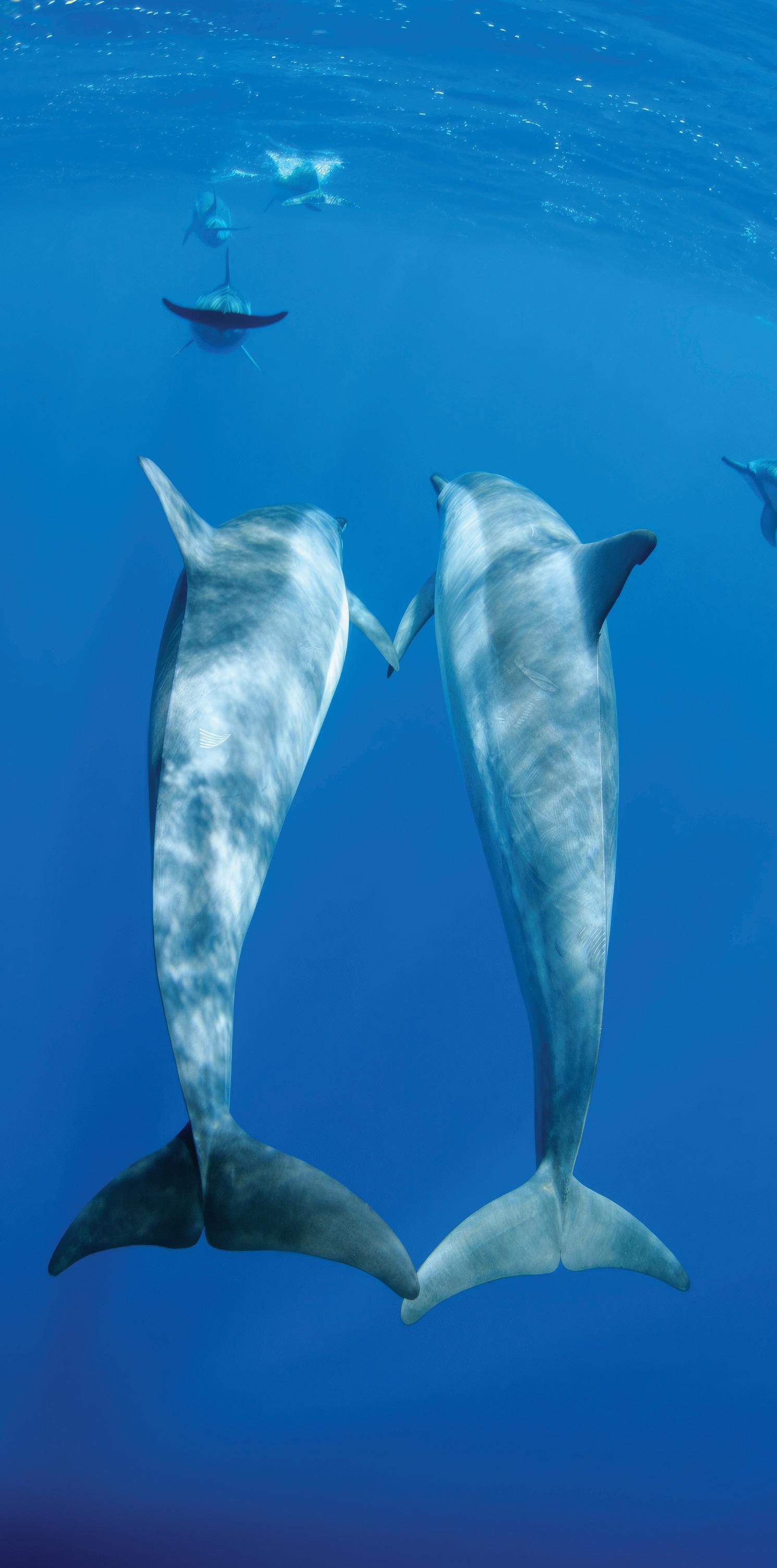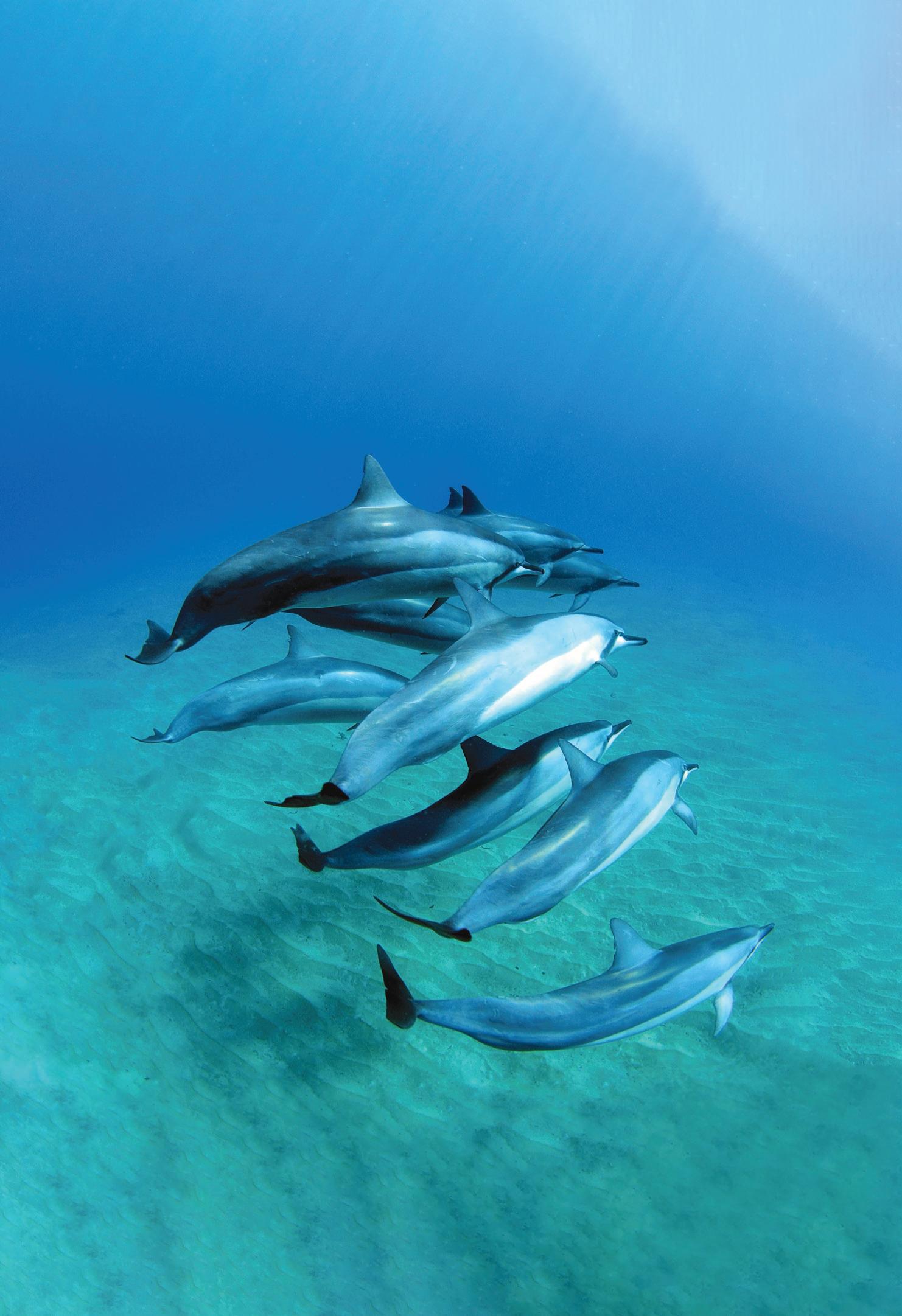 Jason was freediving off the southern coast of Lanā‘i when he capture this issue's cover image of a pod of spinner dolphins on the ocean floor. A resident pod of 100 spinner dolphins to passed by Jason as he swam near the water's surface.