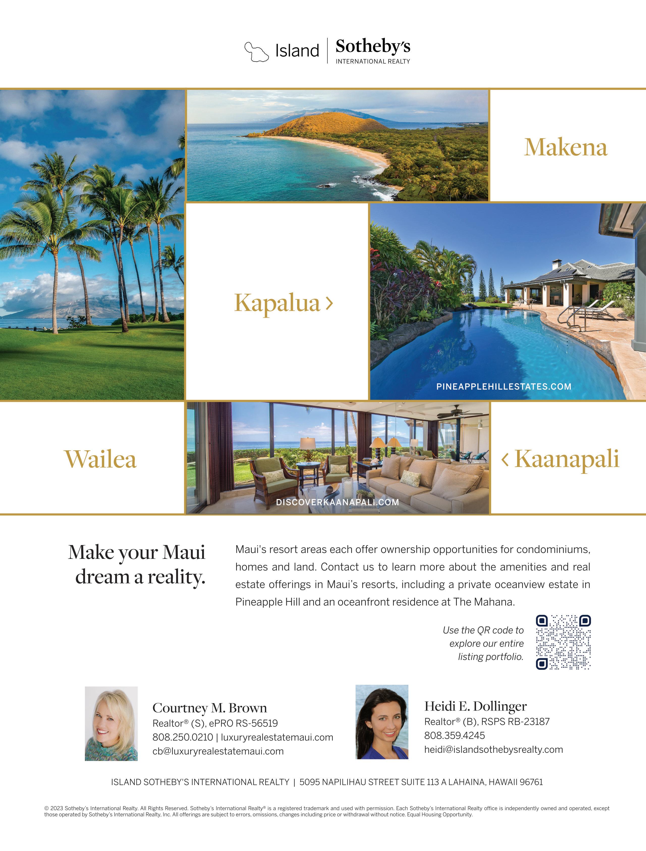 For rates and premier position availability, call (808) 242-8331 or email advertising@mauimagazine.net. Reservation deadlines are three months prior to publication dates.