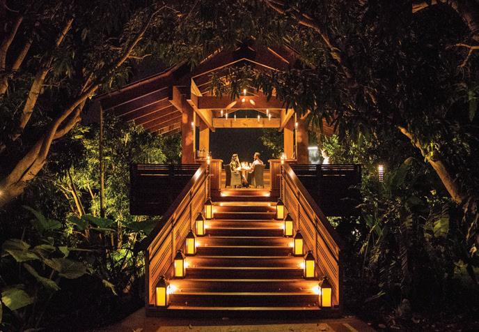 Take a beach shower under the palms with butterflies flitting about. Walk to the peninsula to view Pu‘u Pehe (aka Sweetheart Rock) for photo ops. And then gather at Hale O Manele, an open-air pavilion overlooking