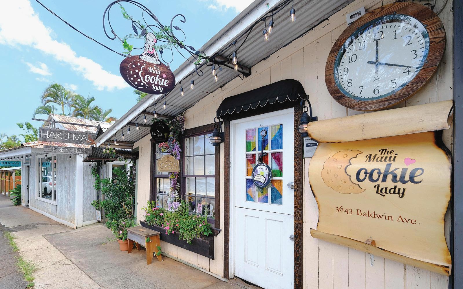 The Makawao Rodeo has been a tradition since 1956. Now called the Makawao Stampede, this year's event is June 30-July 2 at Oskie Rice Arena. The Makawao Parade is June 24. Above, The Maui Cookie Lady and The Dragon's Den are mainstay businesses on Baldwin Avenue.