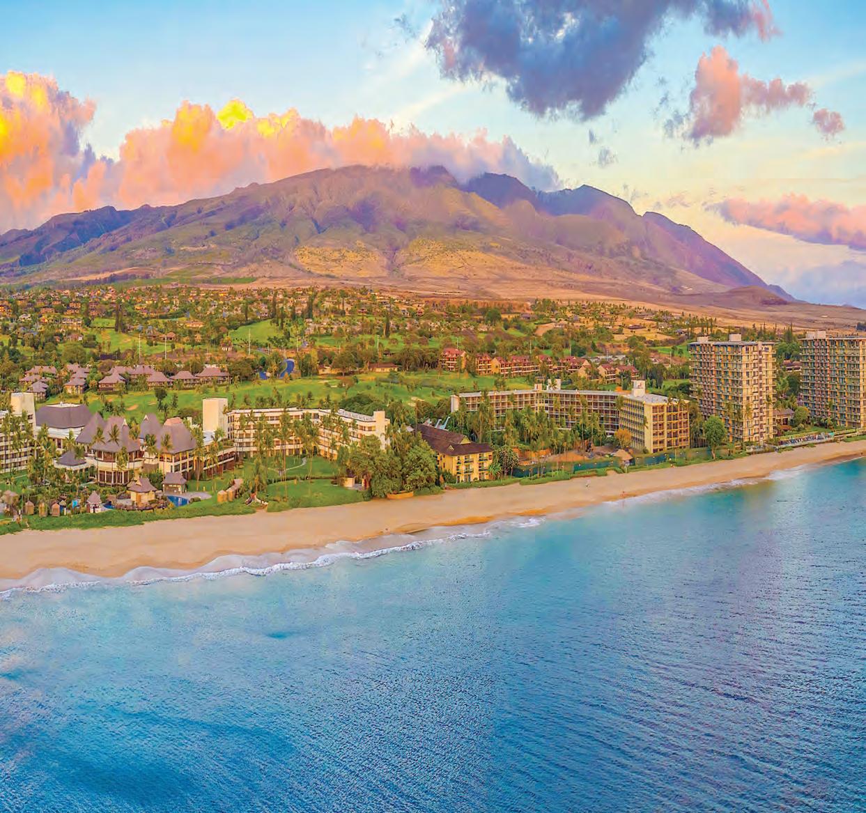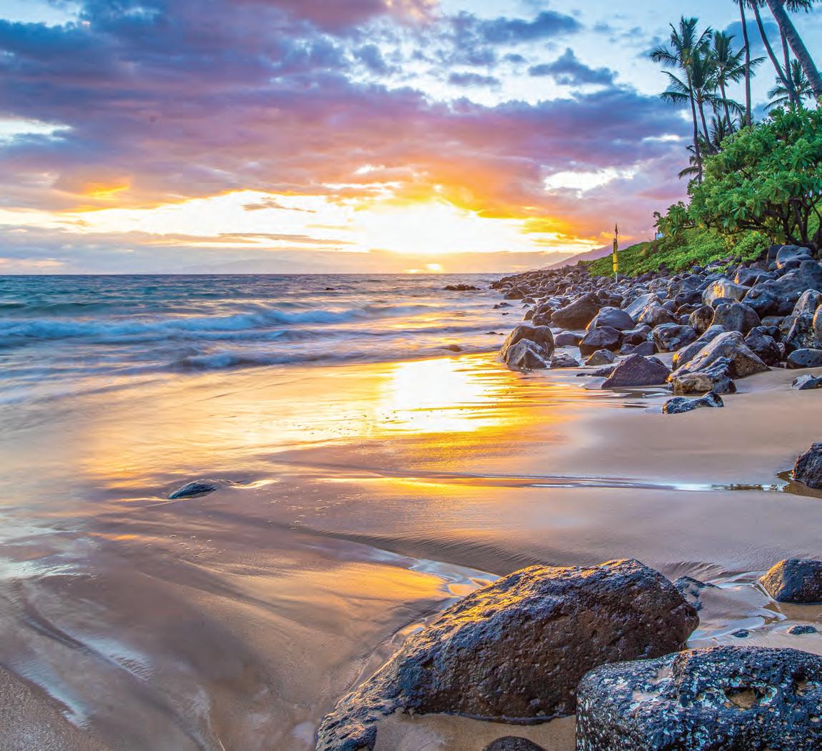 ON THE COVER Soft, salty waves reach Kāʻanapali Beach at sunset, one of Maui’s stunning and serene beaches along its 120-mile coastline. Story begins on page 24.