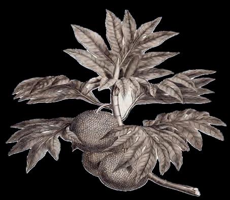One day, an extreme drought and famine struck, leaving the village hungry. His family, unaware of his godly status, did not know that Kū used his powers to sacrifice himself, sinking into the earth so his loved ones would not starve. His wife wept where he disappeared, her tears watering the soil. From that spot emerged a small shoot that grew into the first ʻulu tree. Its branches were heavy with fruit – enough to feed the village. Kū visited his wife in her dreams, showing her how to prepare the fruit. She