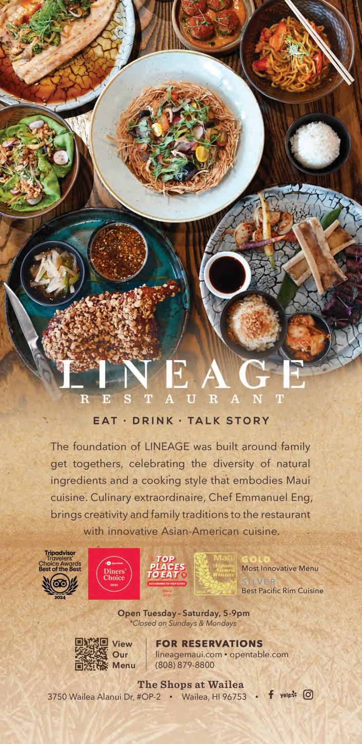 At Lineage in Wailea, Executive Chef Emmanuel Eng blends Maui ingredients, Asian roots and artschool precision into flavor-packed, memor y-driven dishes.