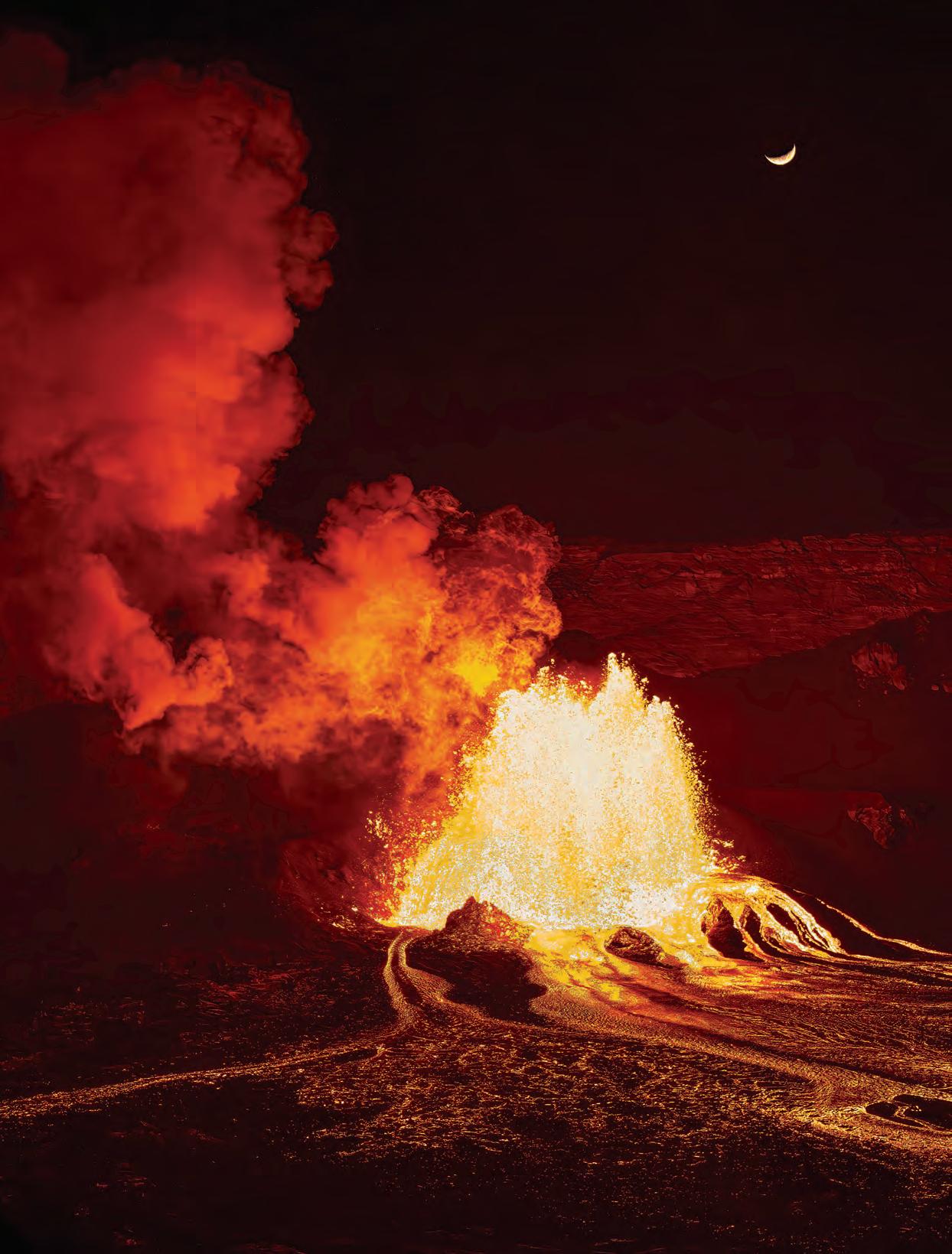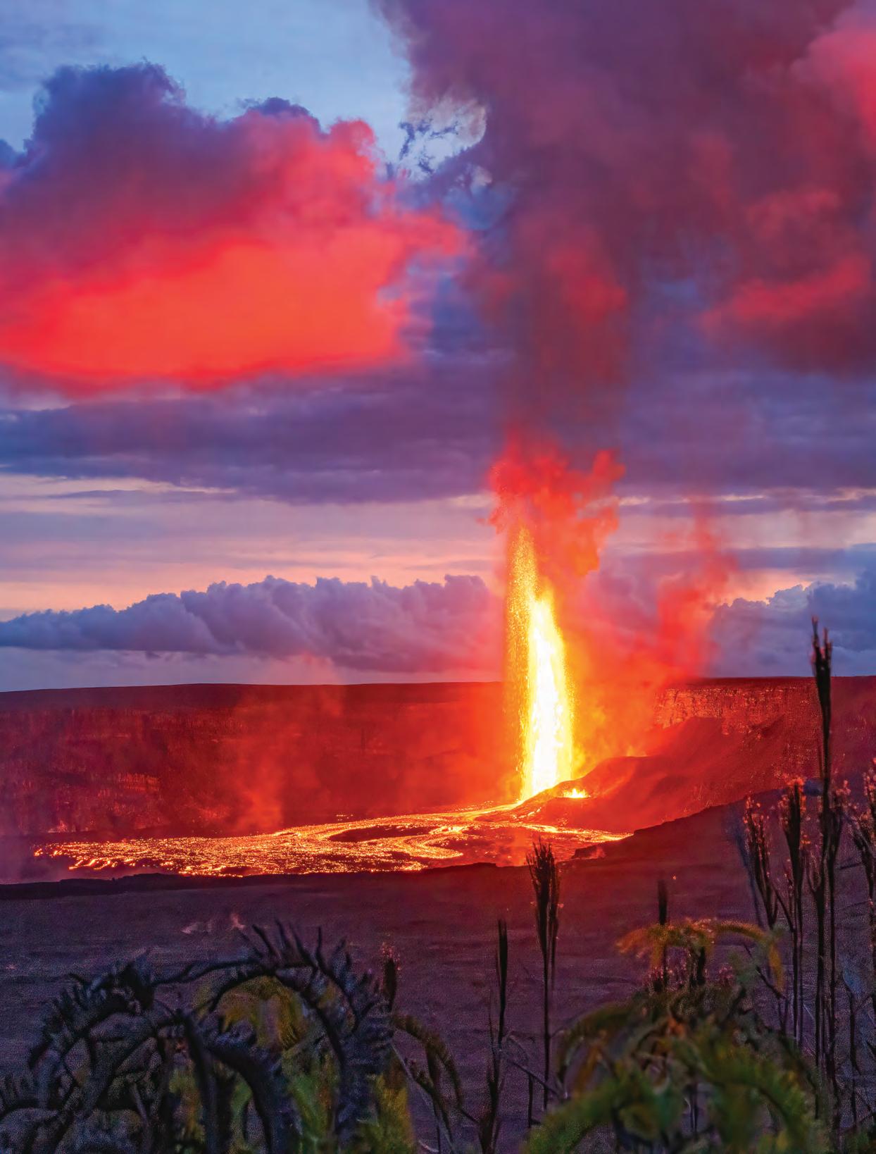 ON THE COVER Kīlauea's south vent bursts to life at blue hour during one of its longest eruptive cycles, lasting more than 24 hours –a radiant reminder of Pele's presence. Story begins on page 28.