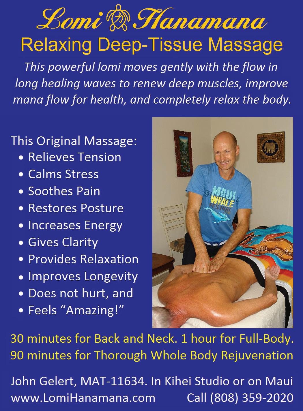 MASSAGE TRADE BUDDY: Seeking CMT or LMT to learn, give, and receive Lomi Hanamana deep-tissue massage techniques. Call John at 808-359-2020. Free!