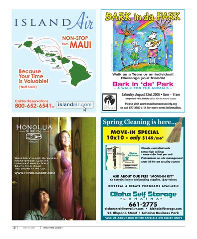aloharental@hawaii.rr.com • AlohaSelfStorage.com 23 Ulupono Street • Lahaina Business Park *ASK US ABOUT OUR OTHER SPECIALS ON SELECT UNITS