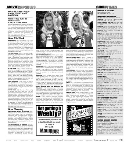 Harry Potter and the Prisoner of Azkaban - PG Th (12:30, 3:45), 7, 10:15, Fr-W (12:30), 3:45, 7 * with MFF passport (5 films - $35) • $10 - single tickets Phone: 572-3456 • www.mauifilmfestival.com