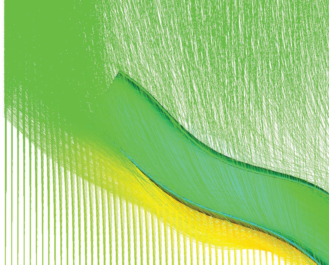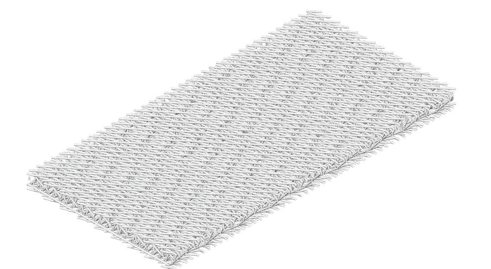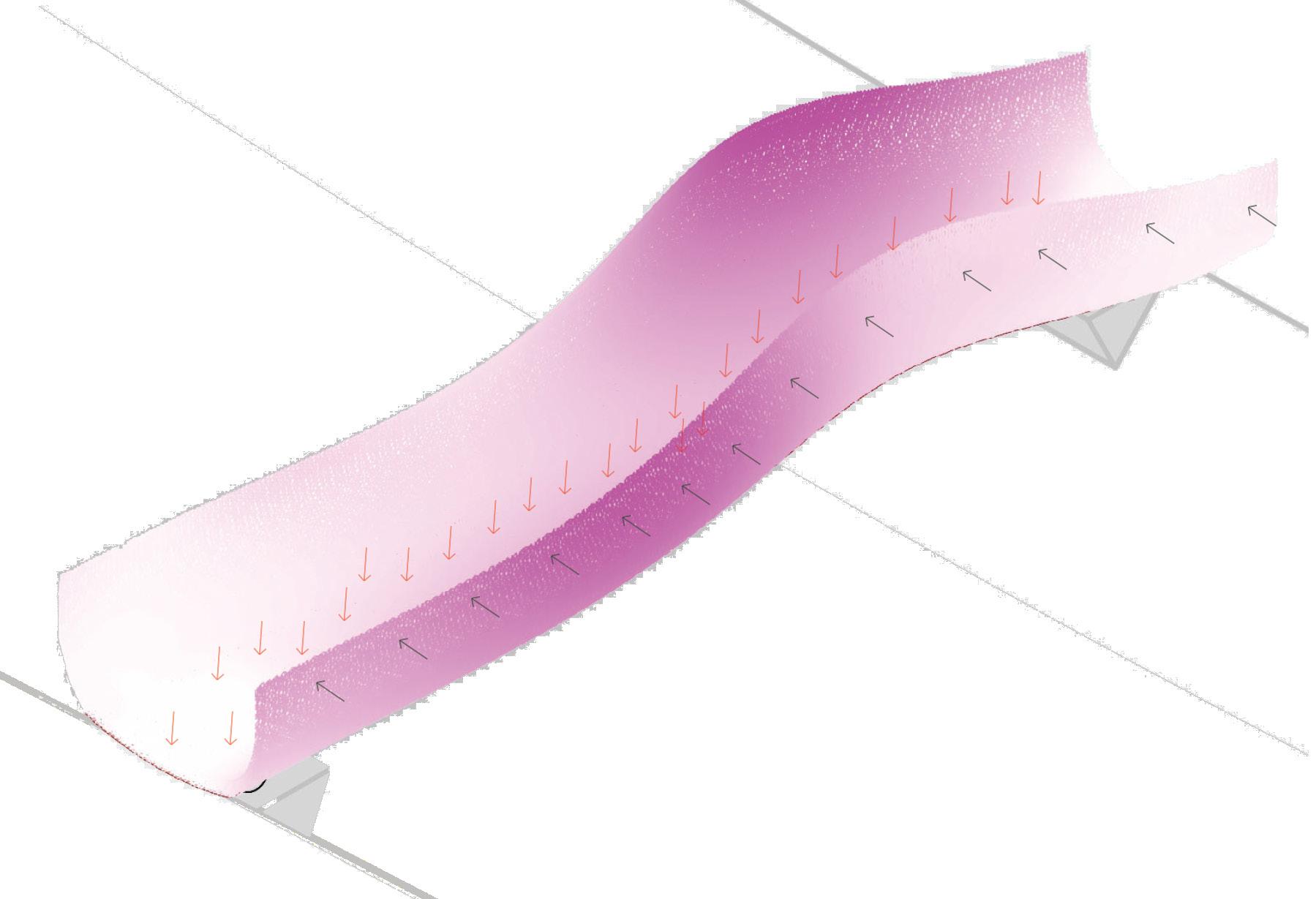 Bouligand Structure geometry abstracted to be applied on a lightweight bridge system. Fibre composites of various densities, orientations, and layer formations are tested digitally for structural behavior.