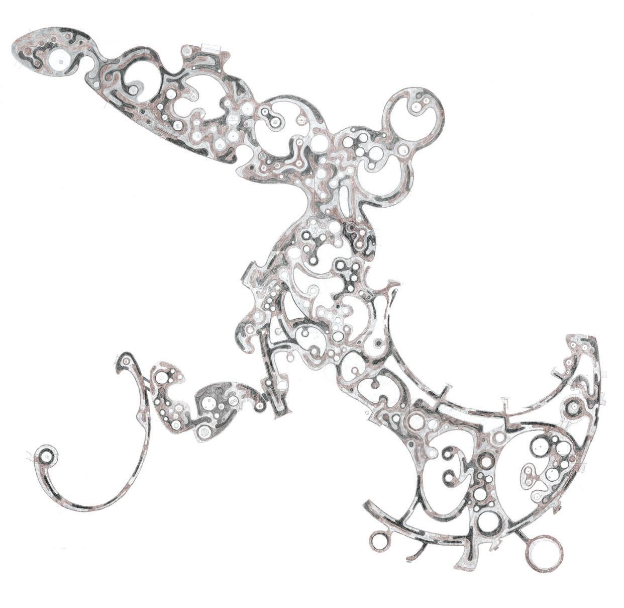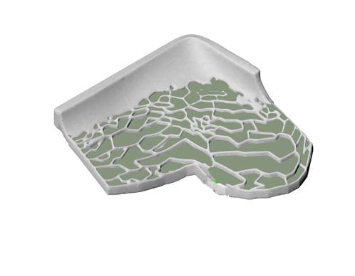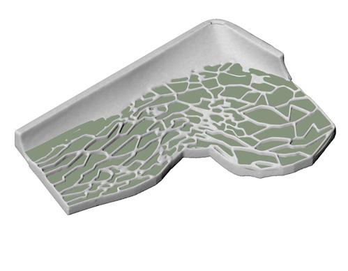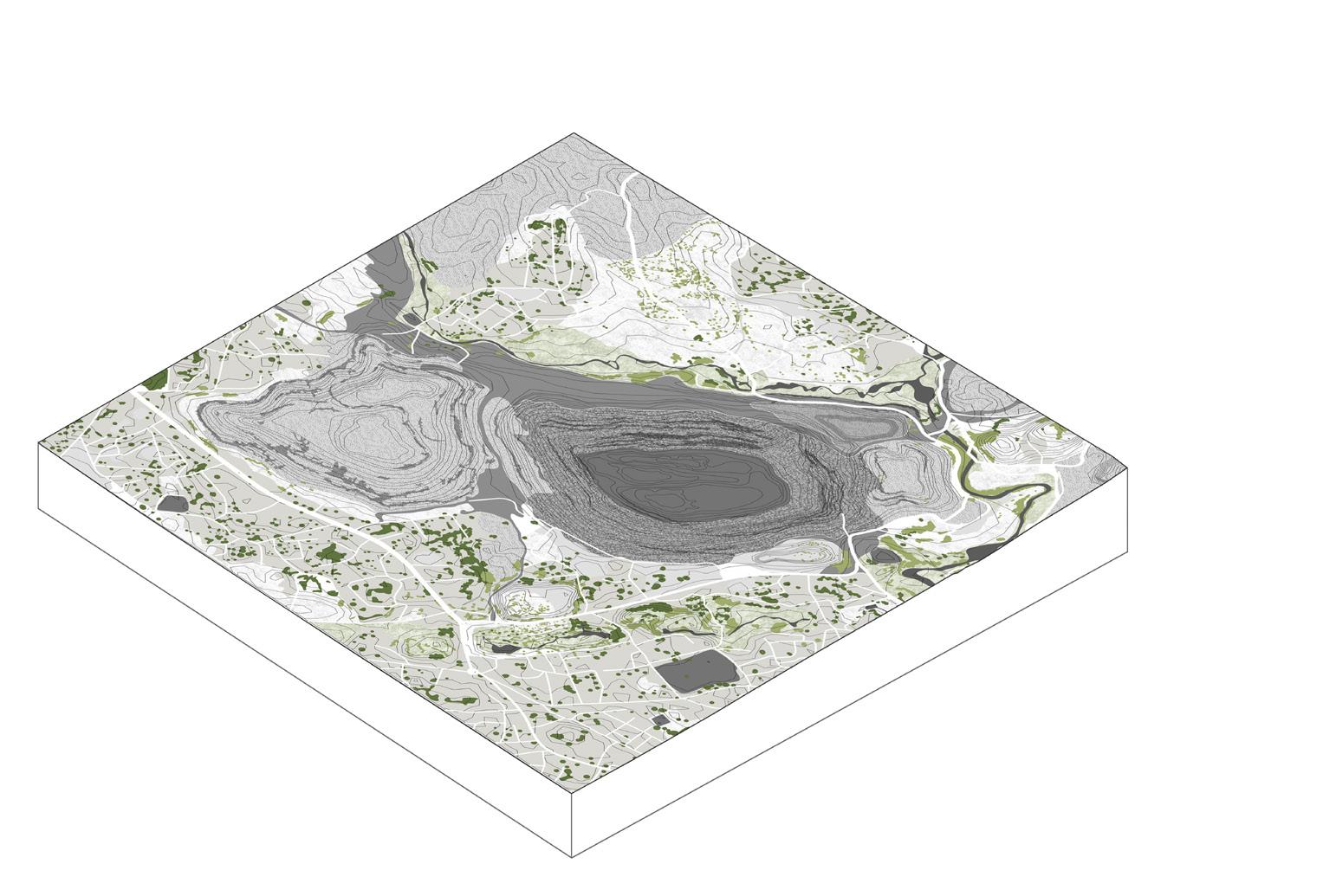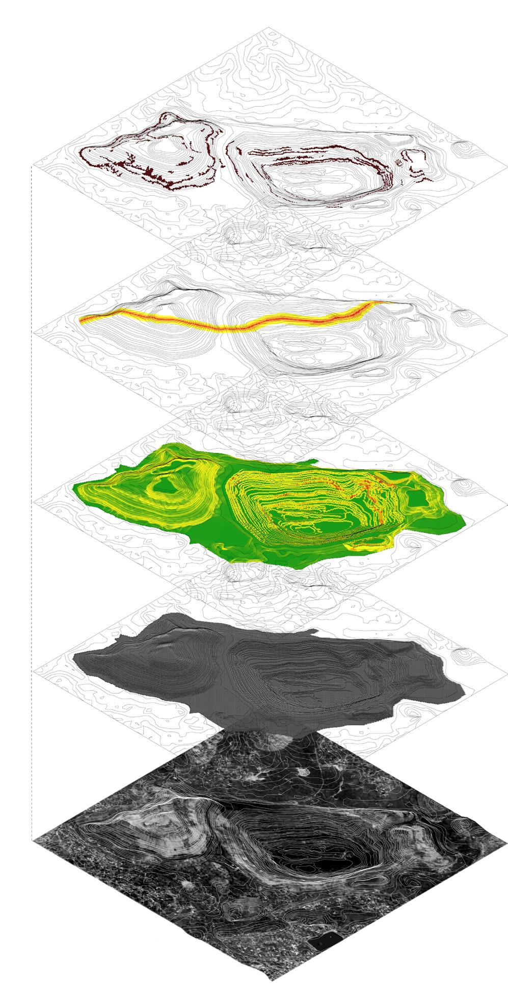 The ground tells the abstracted stories of fields, rivers, towns and forests. A novel formation emerges. Here, it also incorporates insights from the iterative processes.
