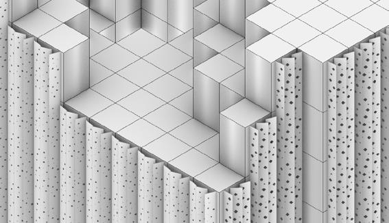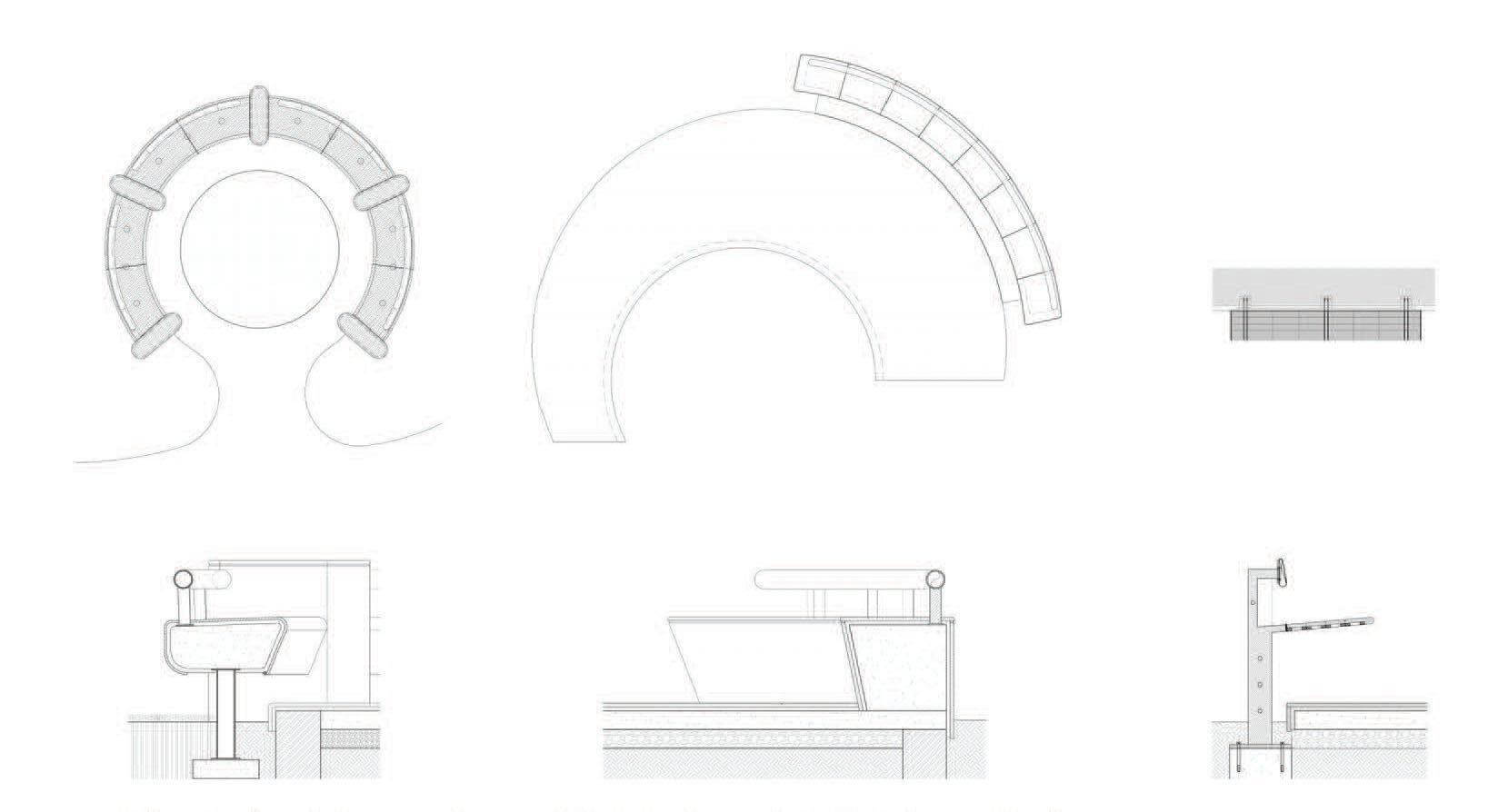 Three stonecrete mixes that resolve service demands and define movement. These materials create subtle guides, playful pauses, and a unified graphic spread across 3000 sq mt, forming the project’s central connective surface.