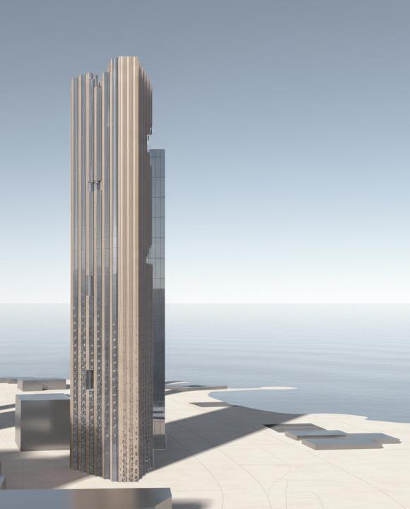 In the context of Kuwait’s climate and coastal setting the MahaNakhon's principles are re-adapted. This project explores tower morphology and façade behaviour through an evolutionary design process and multi-objective optimisation using Wallacei. The aim was to test how different geometric logics could improve self-shading, enhance views to the gulf, and increase the stack effect at the tower’s core. Thousands of variations were generated by treating geometric controls as “ genes,” allowing the system to evolve forms that performed better against the set criteria. The resulting simulations were then unpacked, compared, and clustered to guide the selection of the most effective design directions