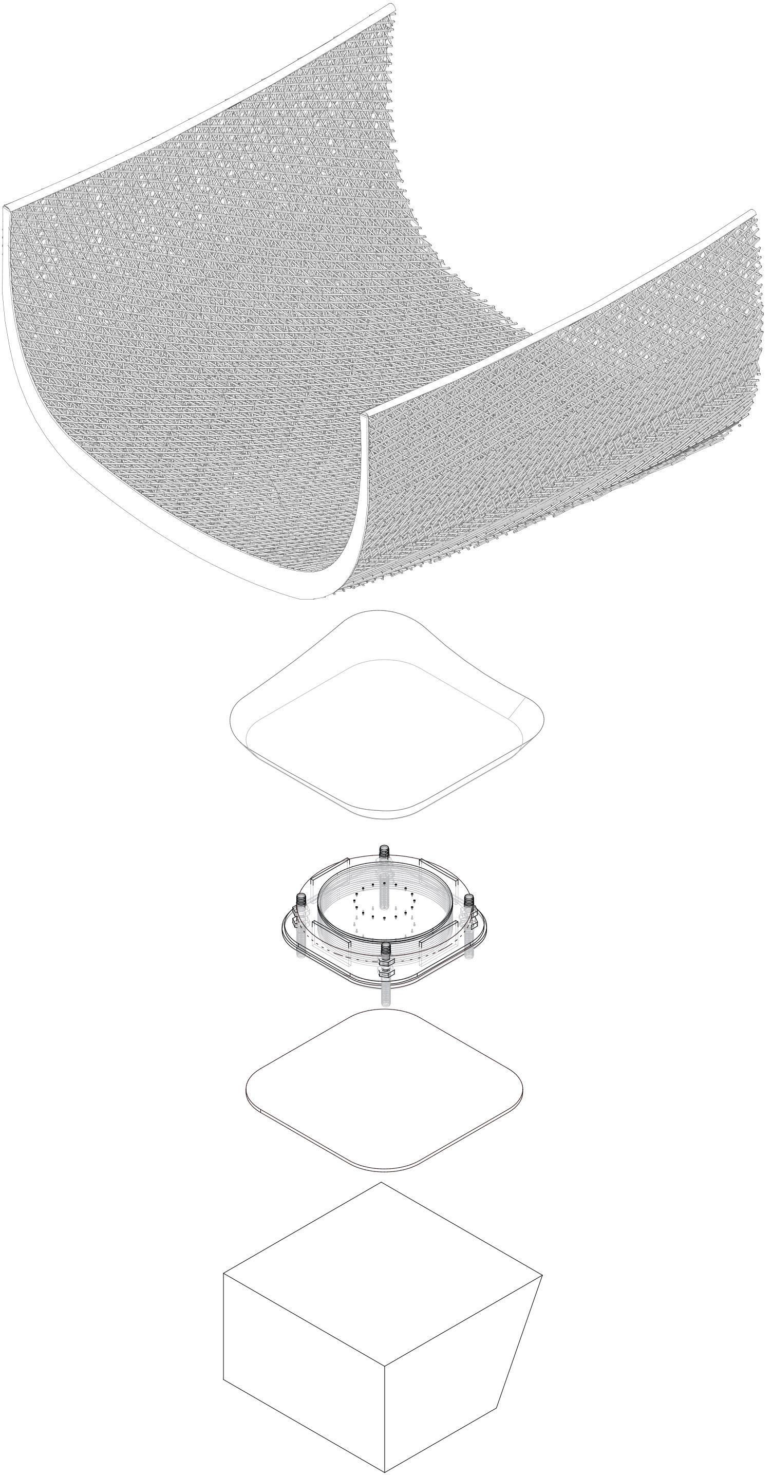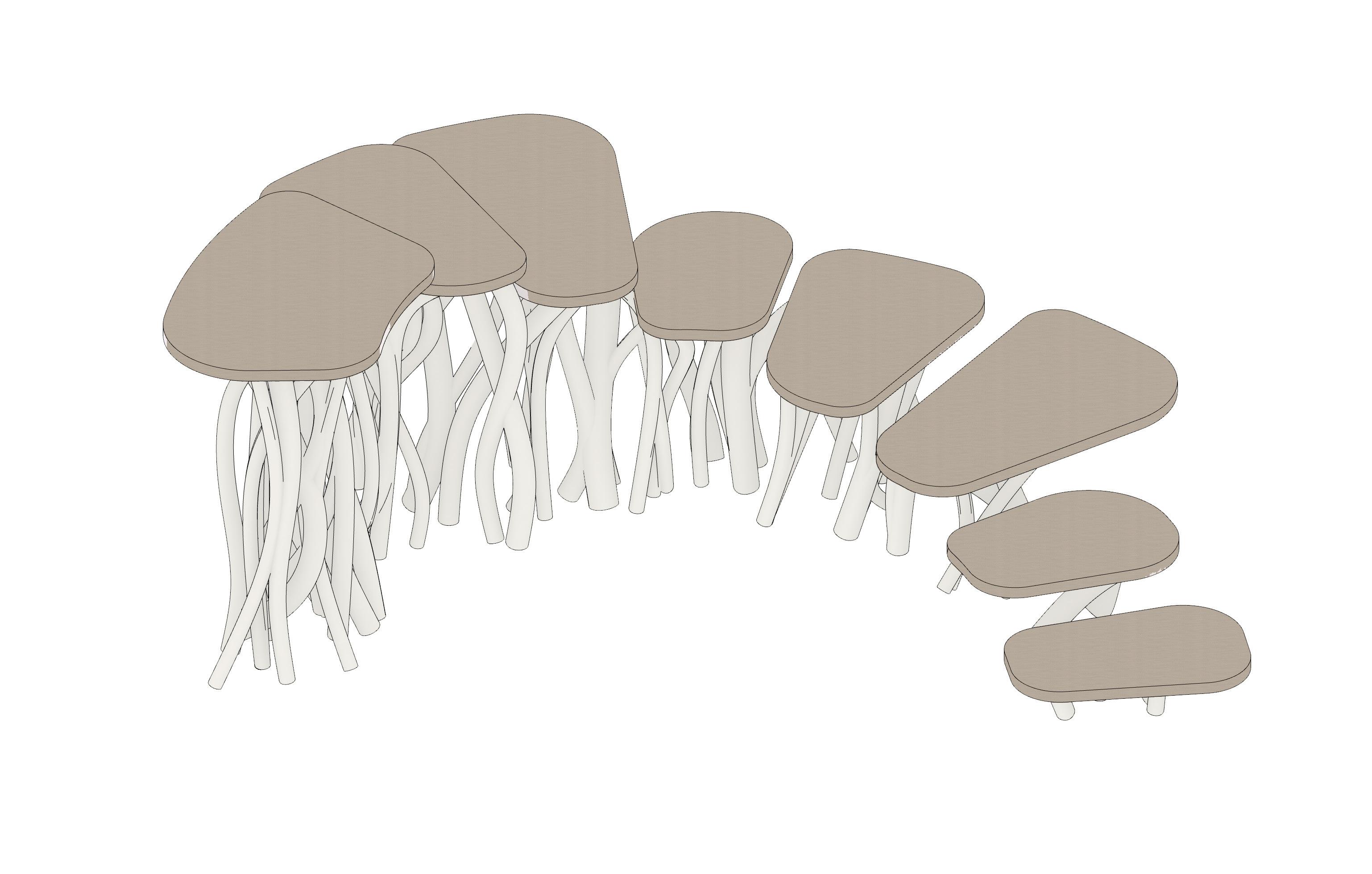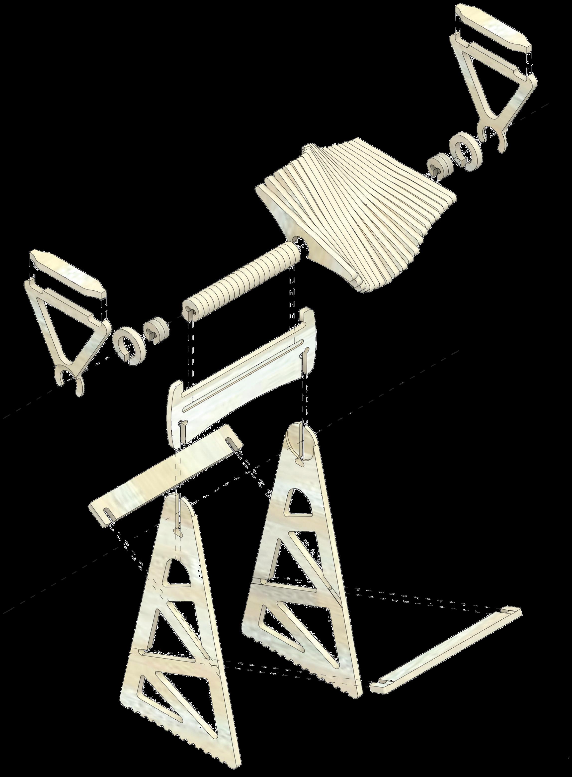 Developed as a Digital Technologies exercise under Archineering, the chair explores flexibility and multipurpose use within defined material, fabrication, and size constraints. All components were digitally modelled, CNC-milled, and assembled through a friction-based interlocking system in poplar plywood, creating a structurally stable form without additional fasteners. The design works within the limits of material and production technique, enabling efficient mass production, simple assembly and disassembly, and adaptable variations in size and height. Its unconventional geometry encourages active and tactile engagement from the user.