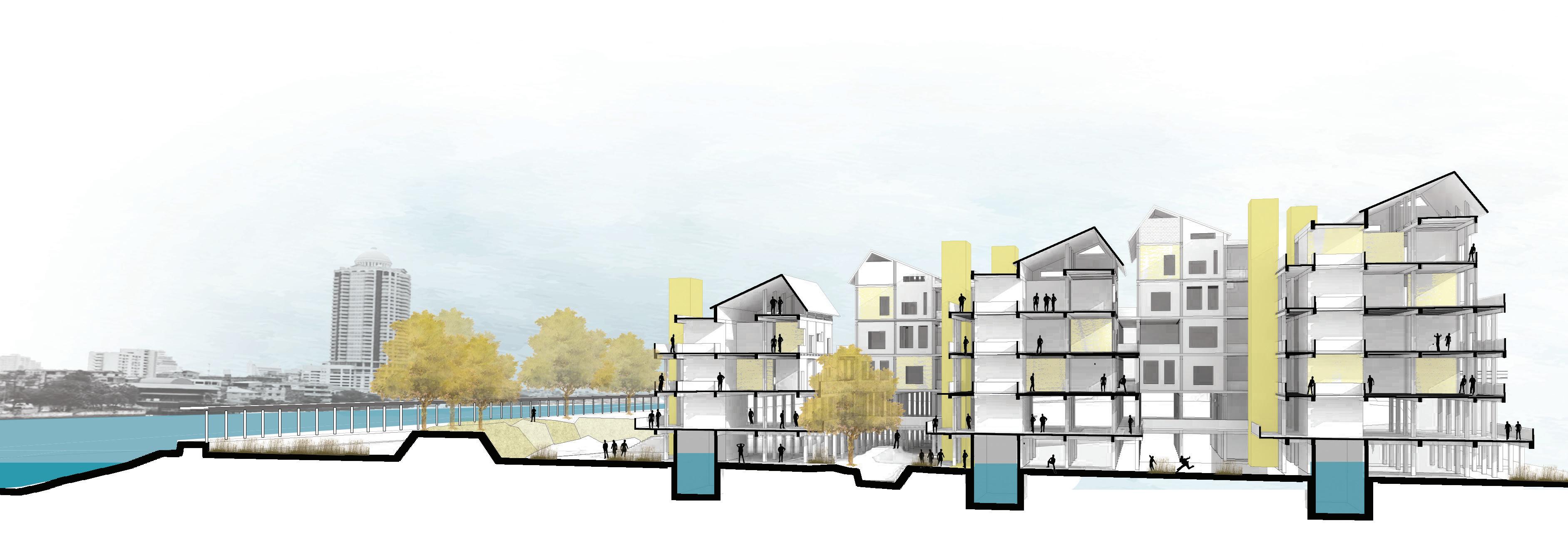 From an agrarian settlement to a megapolis with snarling traffic, Bangkok, like many other cities, has harmed the relation between humans and ecology. Our proposal aims at rejuvenating this relation by sensitizing Bangkokians towards water. Our vision for redeveloping Bangkok is based on the idea that spaces for collective and public integrated with water sensitive systems will make Bangkok resilient, Bangkokians aware of water systems and enhance its urban experience.