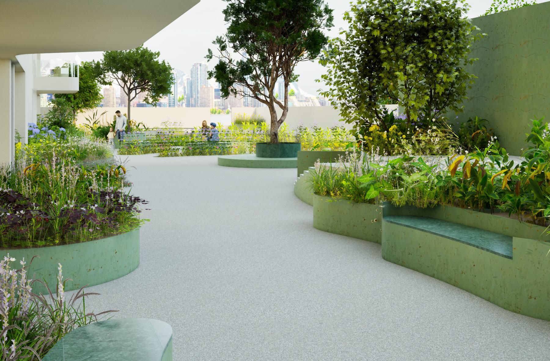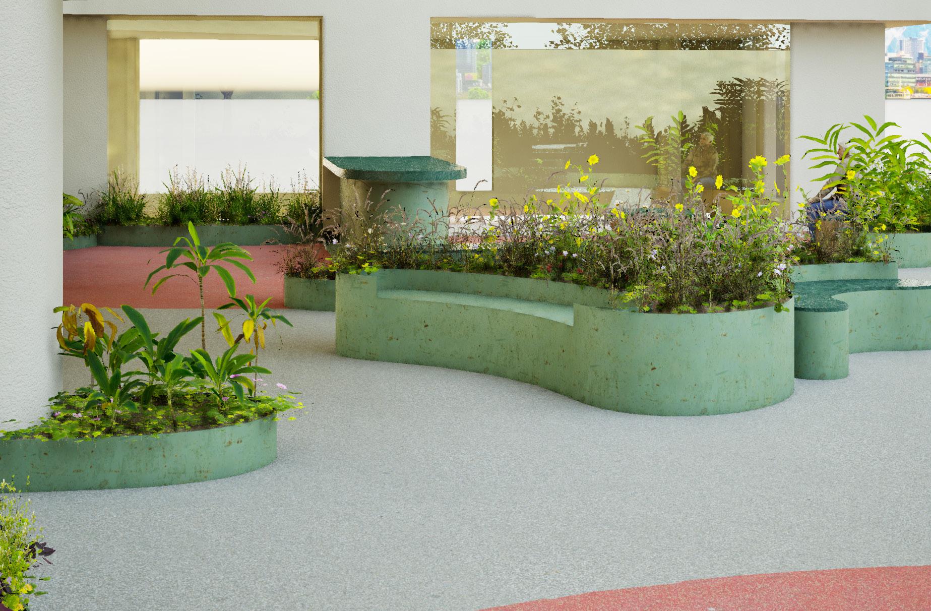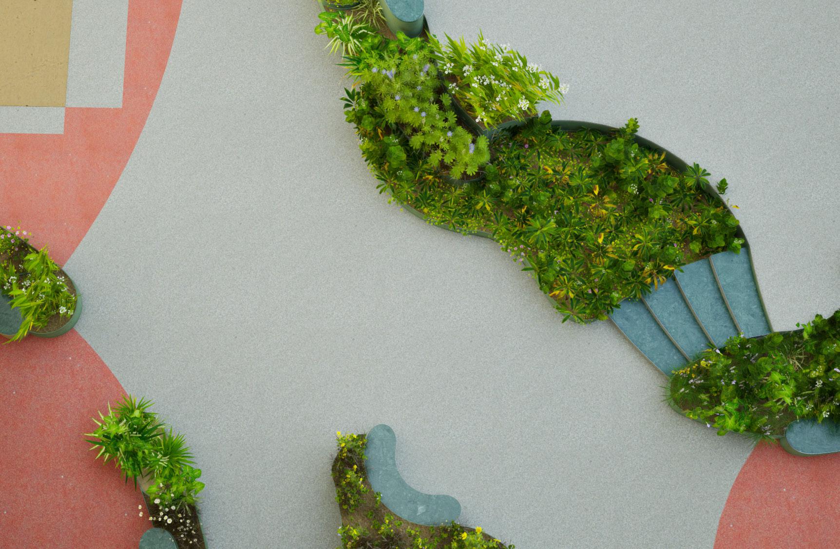 d planting, flooring, and colour cues guide behaviour and use. Together, these simple gestures shape an inviting, playful public space.
