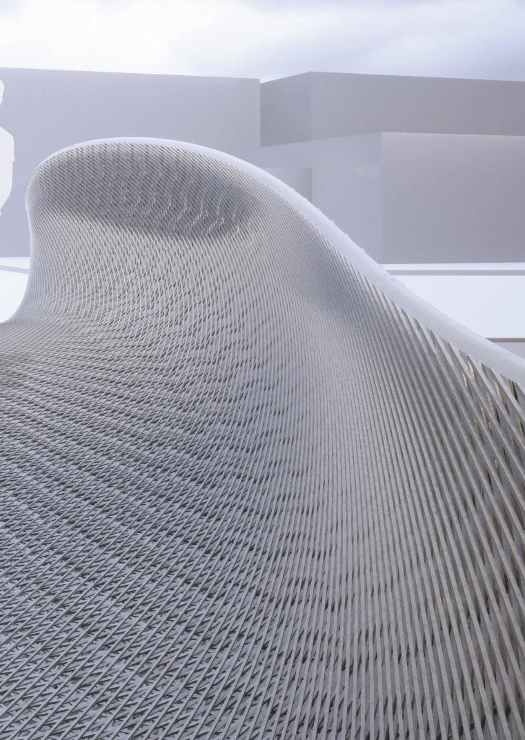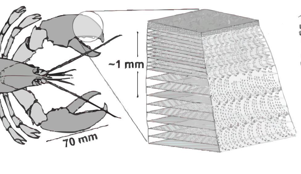 This project investigates the lobster shell as a model for high-performance, materially efficient architectural systems. By studying the Bouligand microstructure of Homarus americanus, we extracted principles of layered chitin-fiber organisation that achieve remarkable strength, flexibility, and impact resistance. These biological logics were abstracted into computational workflows, informing the design of a lightweight pedestrian bridge. Using multi-objective evolutionary optimisation, computational fluid dynamics, and structural analysis, the geometry was refined for minimum displacement, reduced material volume, and improved wind performance. Robotic fabrication and material prototyping further translated biological patterning into a scalable architectural strategy.