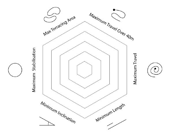 Interpolated curves created by site boundary, scaled to create zone of geometrical movement