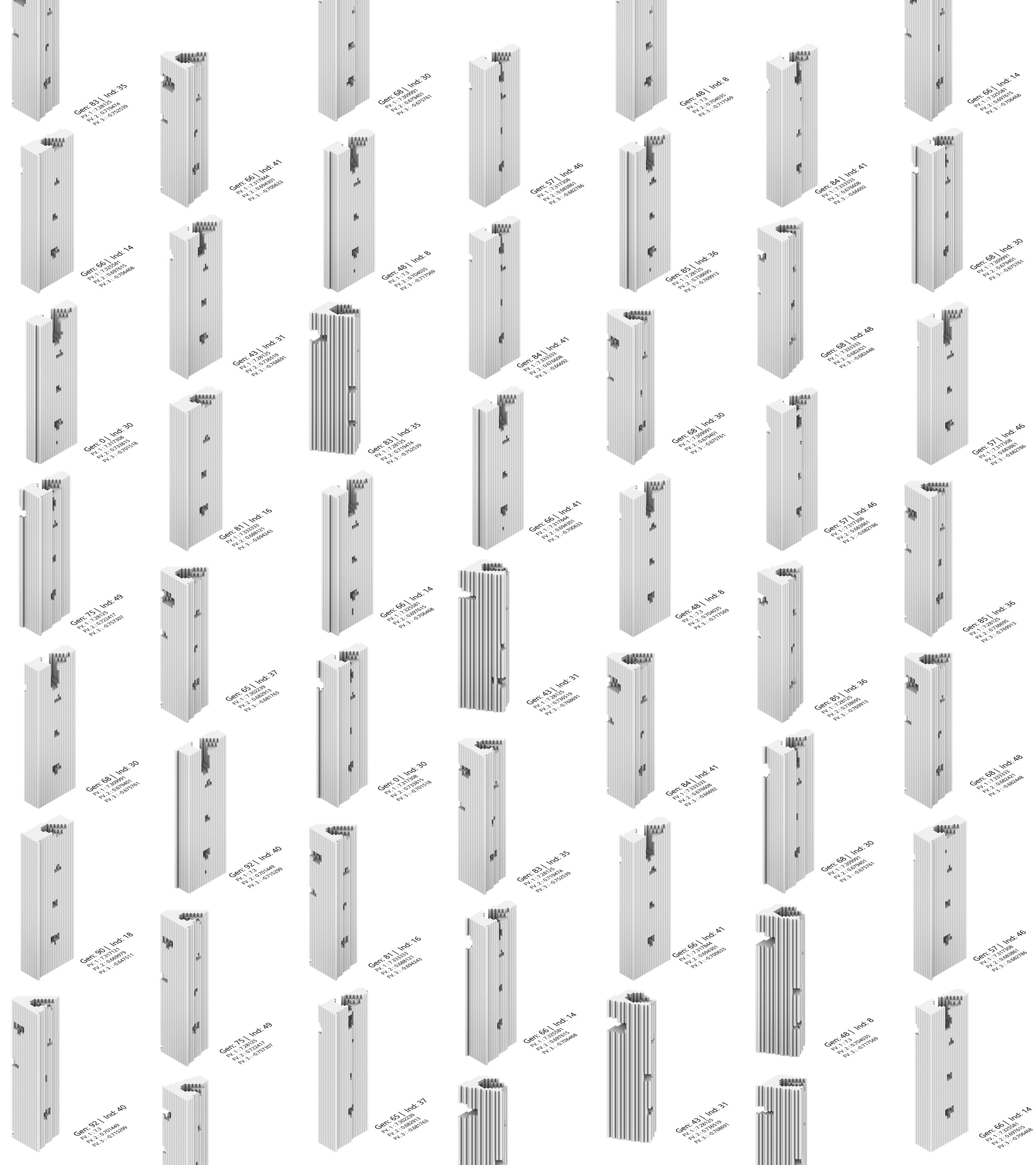 After running sequential simulations, ten variants were shortlisted, and detailed post-analysis led to the selection of a single optimised tower morphology.