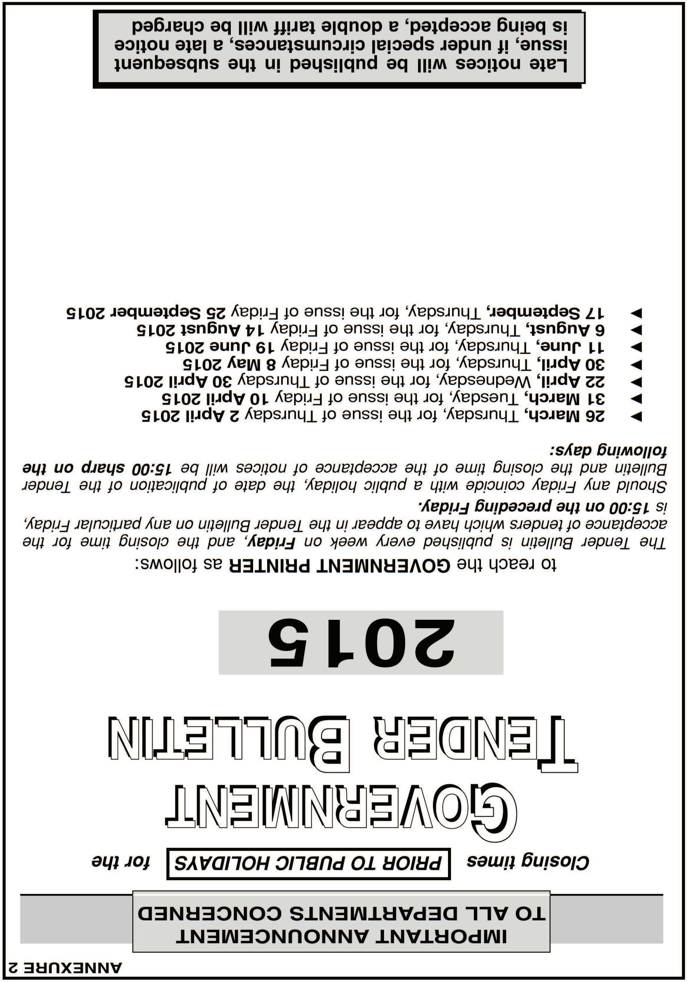 This gazette is also available free online at www.gpwonline.co.za 2015 DESCRIPTION REQUIRED AT TENDER NO CLOSINGDATE