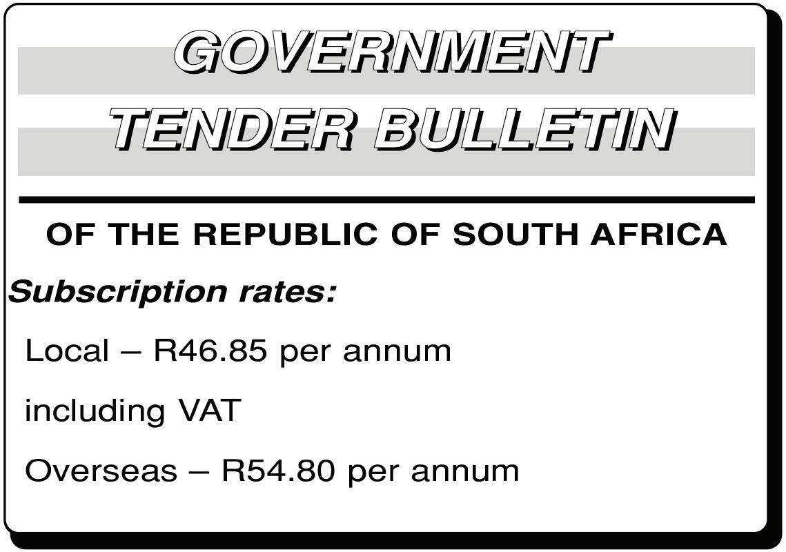Thisgazetteisalsoavailablefreeonlineat www.gpwonline.co.za 182 No. 2884 GOVERNMENT TENDER BULLETIN, 4 SEPTEMBER 2015