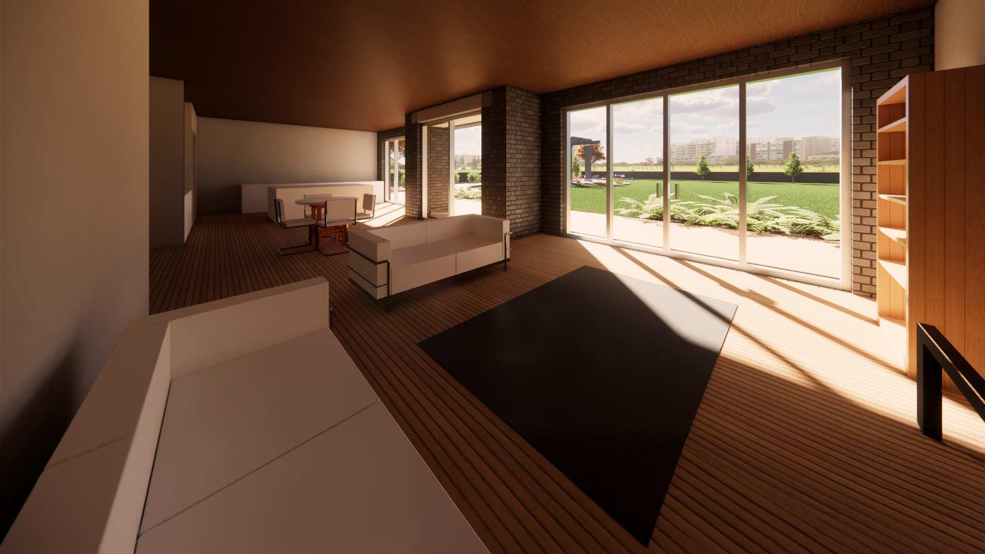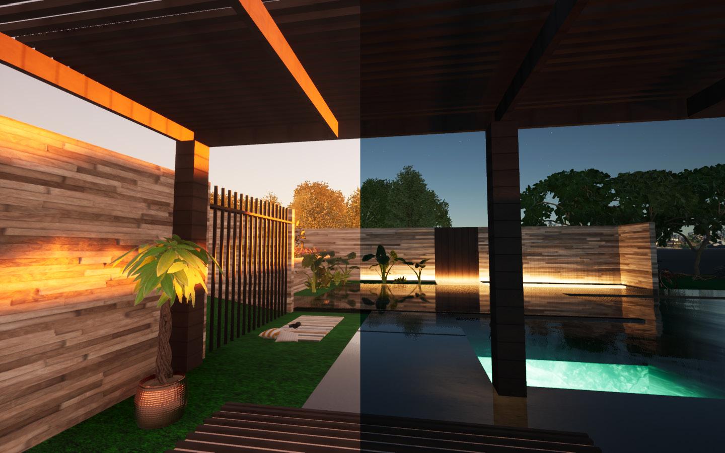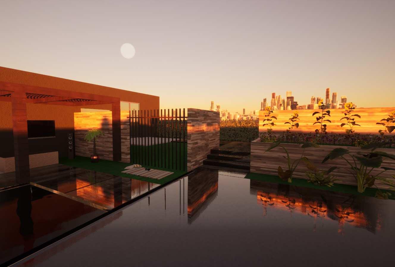 The process started with drafting the floor plan and elevations in AutoCAD to establish precise dimensions and layout. The 2D drawing was then imported into Rhino 3D, where the structure was modeled in detail, including walls, windows, roof elements, and any custom design features. Once the 3D model was finalized, it was exported to Twinmotion for rendering. In Twinmotion, materials, lighting, and environmental elements like landscaping and sky settings were applied to bring the design to life. The final rendering captured realistic textures and lighting, transforming the original sketch into a fully visualized residential concept.