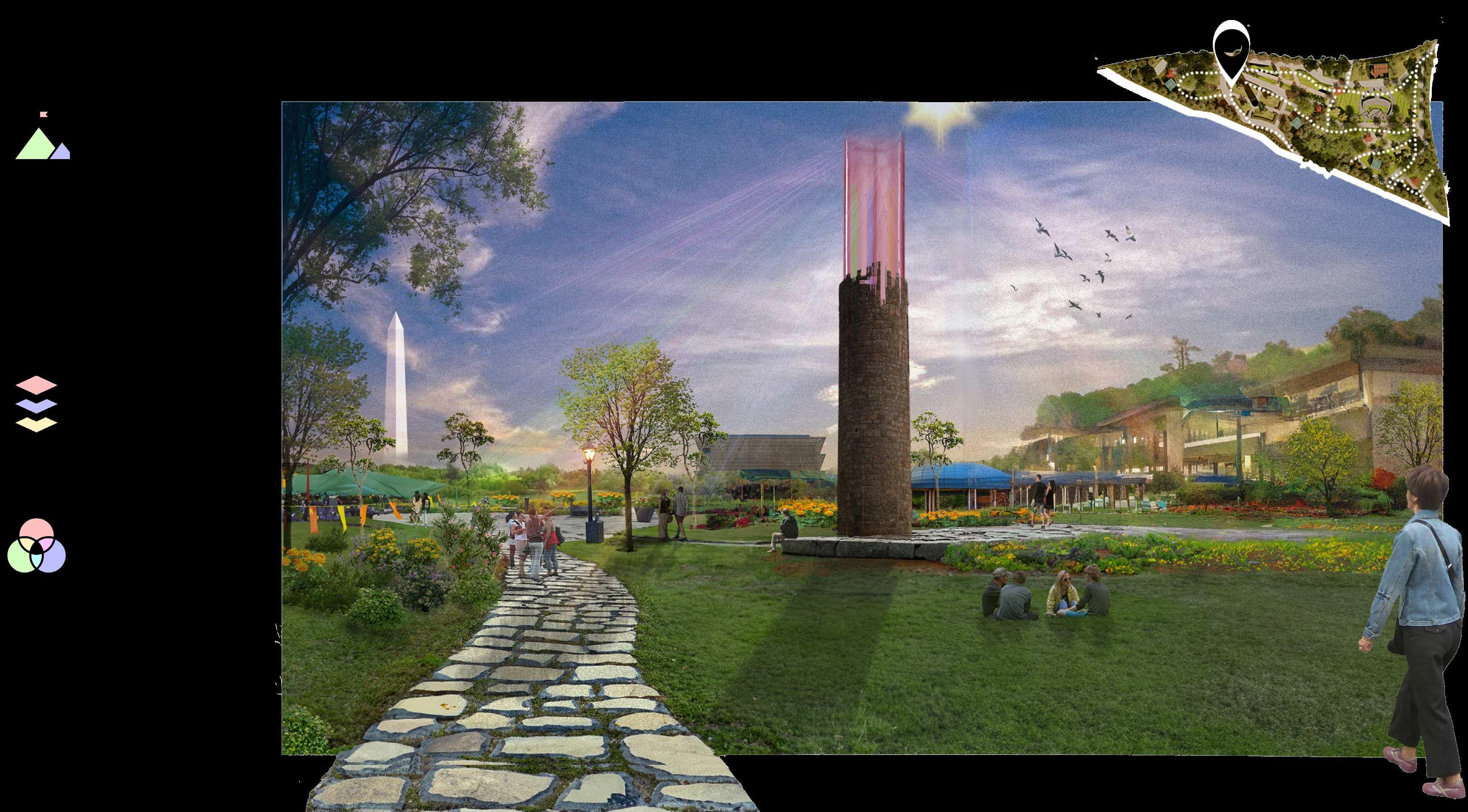 The Illumination of the Latino Communities Resiliency is explored through the themes of Unity and Origin. The programs of Learning, Celebration, and Connection showcase these themes with spaces throughout the site.