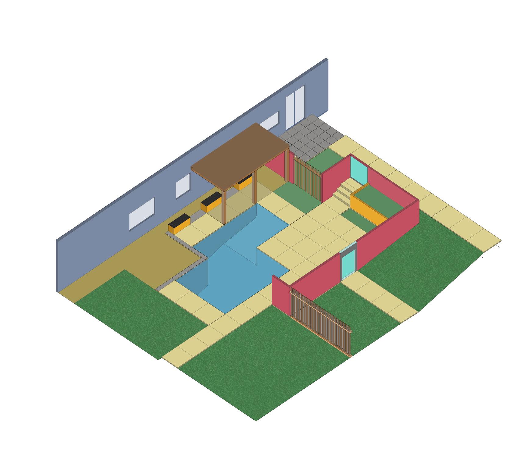 Implementing the system Diagram, the following landscape was designed; having additional paths and spaces to include the following actvities.