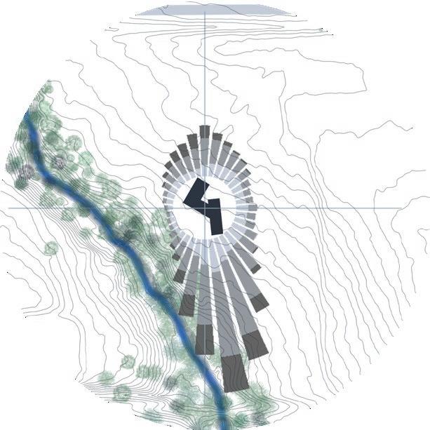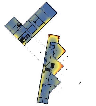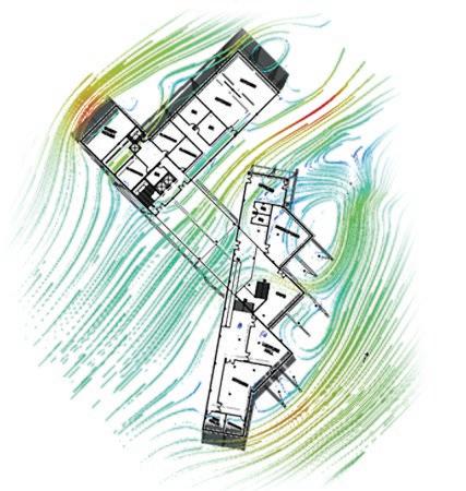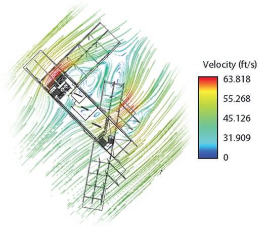 The building is rotated 20 degrees to capture southwest winds during the summer to allow for natural ventilation. Daytime analysis helped determined which areas needed a reduction in window exposure to avoid excessive solar heat gain.