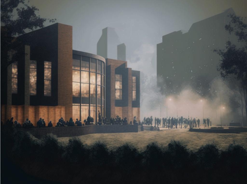 The Native Nations Center seeks to provide a stronger connection between the University of Oklahoma, students, professors, and the 39 Native American tribes of the state. The building will serve the Department of Native American Studies and the Native Nations Center and will foster community engagement by incorporating public spaces that can be used by the programs and the university. In combination with traditional programing studies, AI image generator, Midjourney was used as a source of inspiration by using our design narrative to foster design ideas.