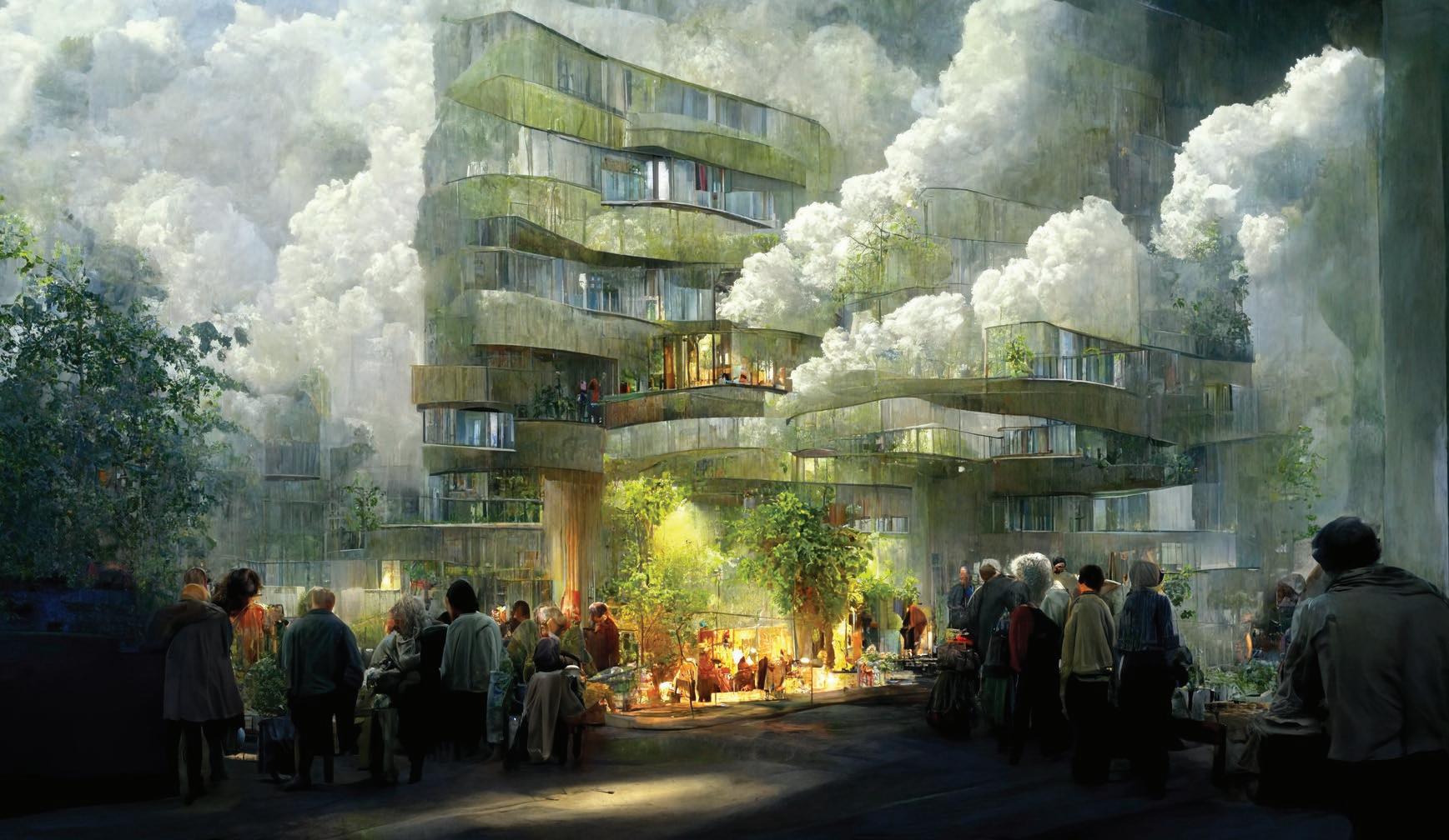 Using our concept statement, key worlds were used to create prompts that were imported into Midjounery which created the images above.