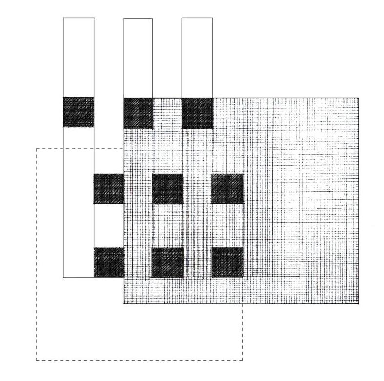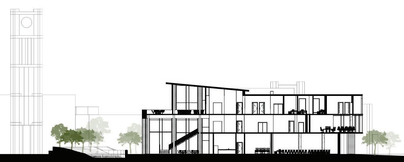 The first iteration experimented with the building’s orientation to direct summer winds towards the teaching kitchens, on the west wing, while creating an open space for a garden.