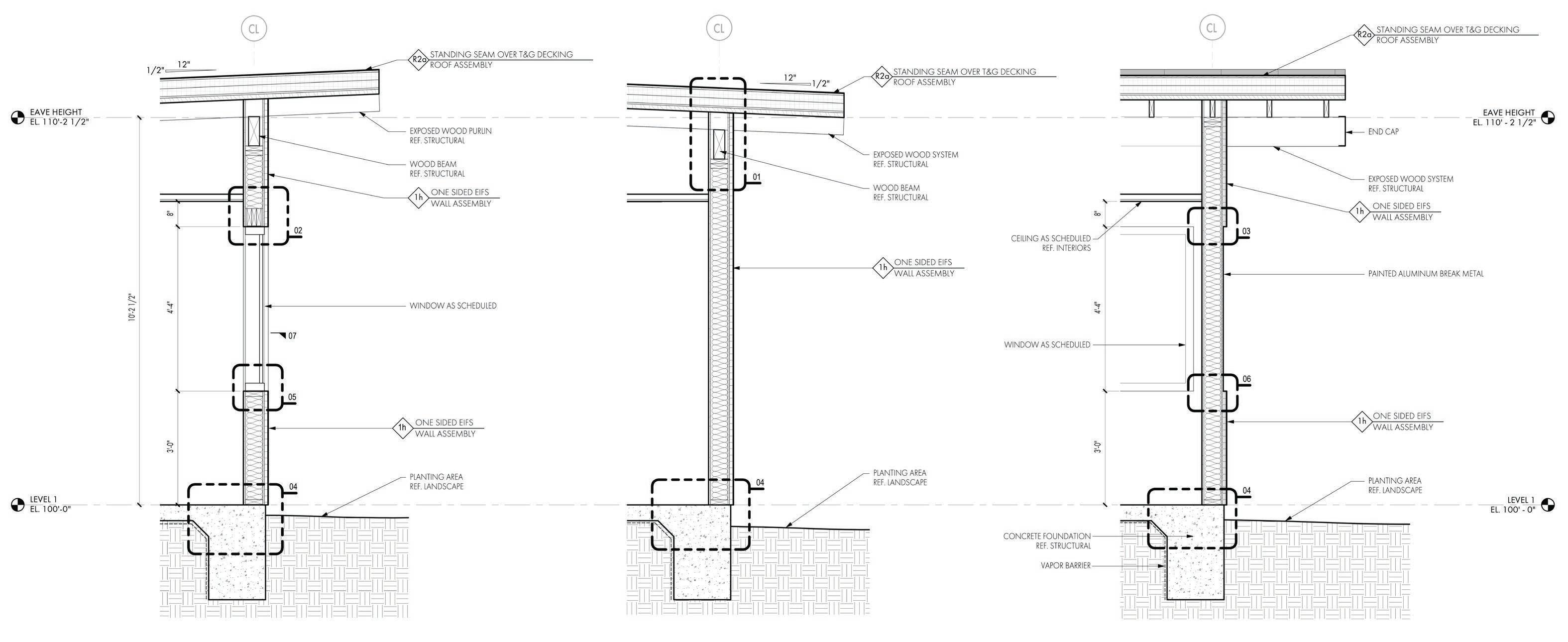 2023 - Detail drawings for a Type-5B construction building. 06 Wall Sections Wall Type Roof Type Section/Plan
