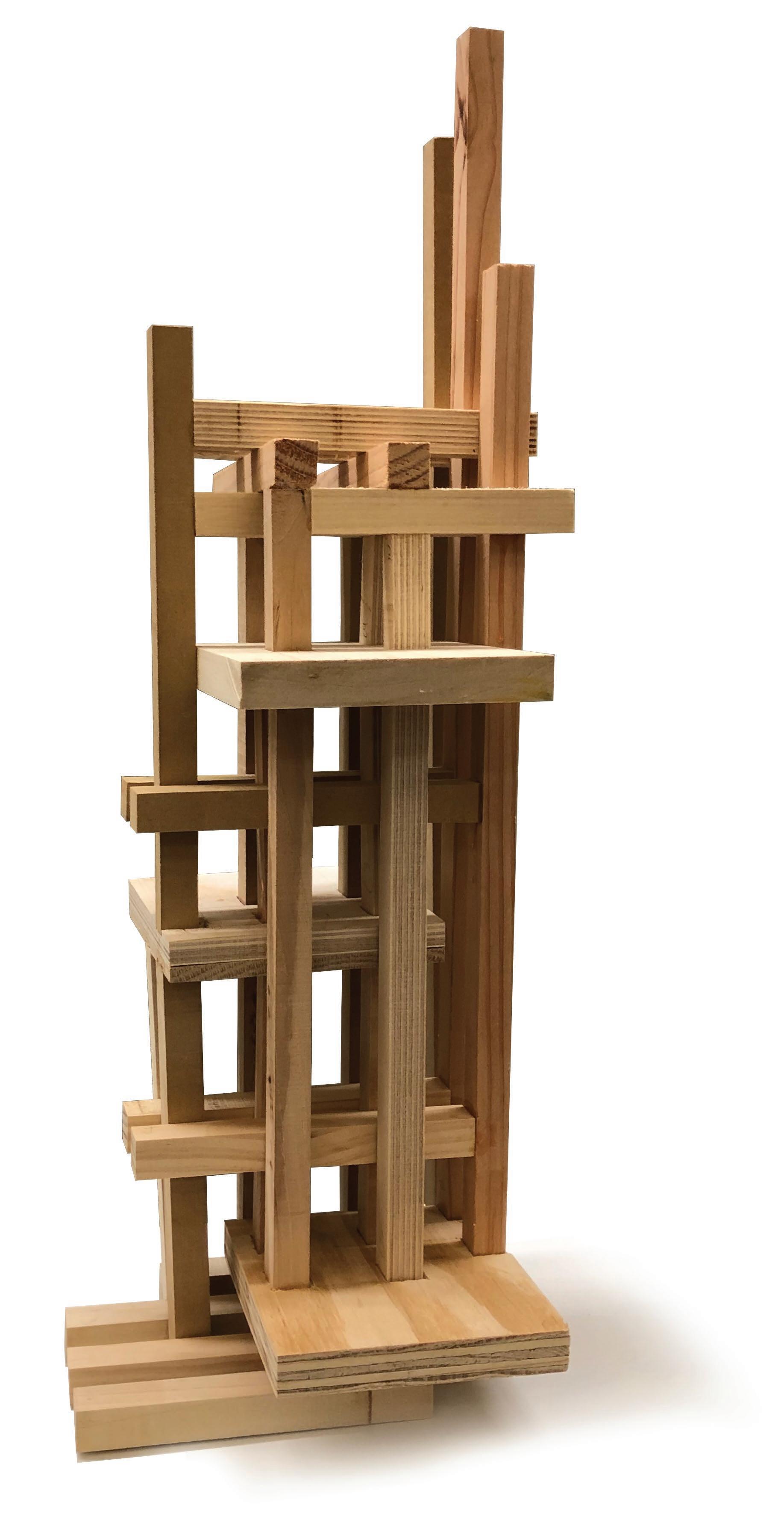 Using scrap wood cut down to long, narrow proportions to create a series of spaces while experimenting with light and shadows.