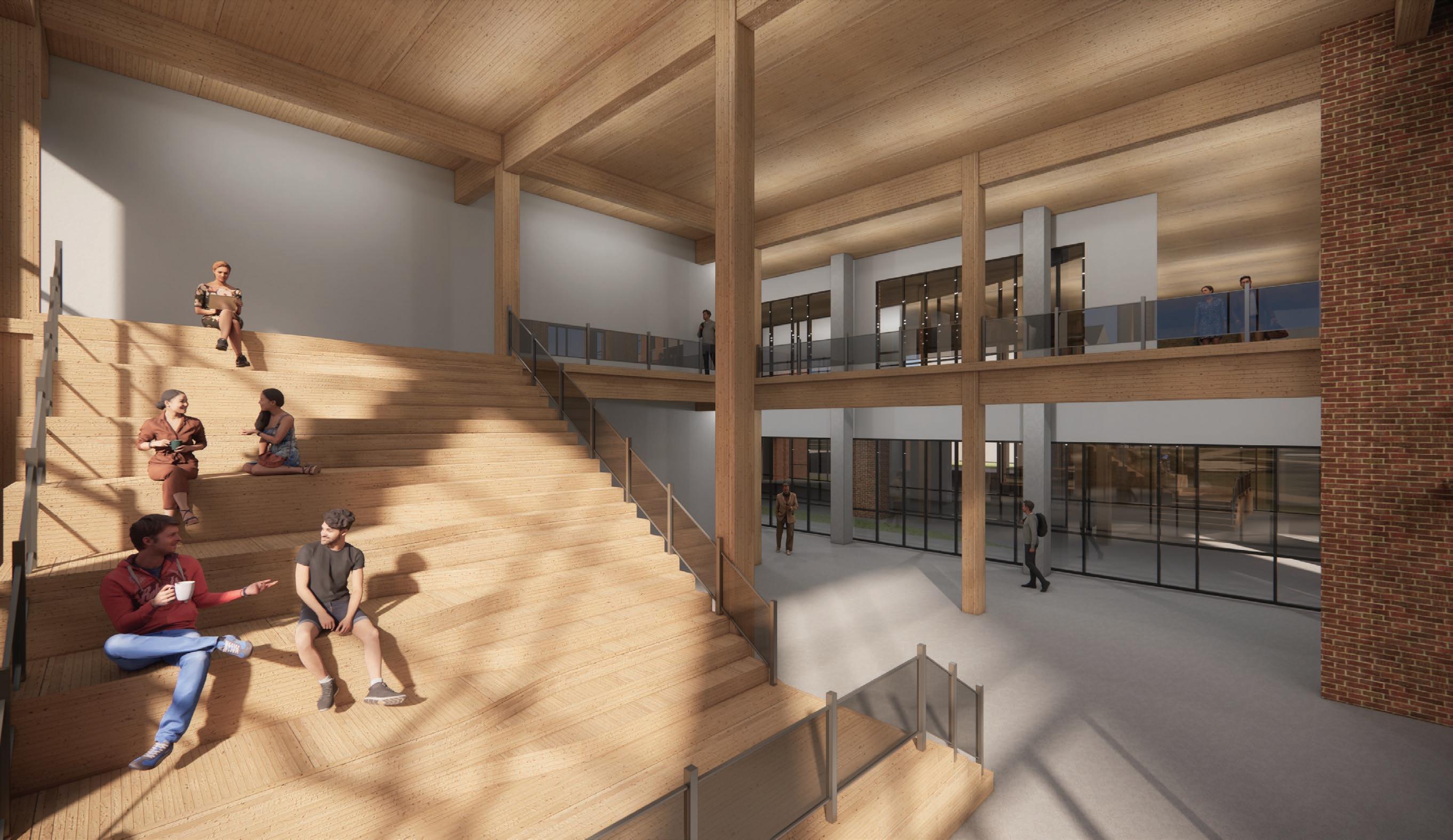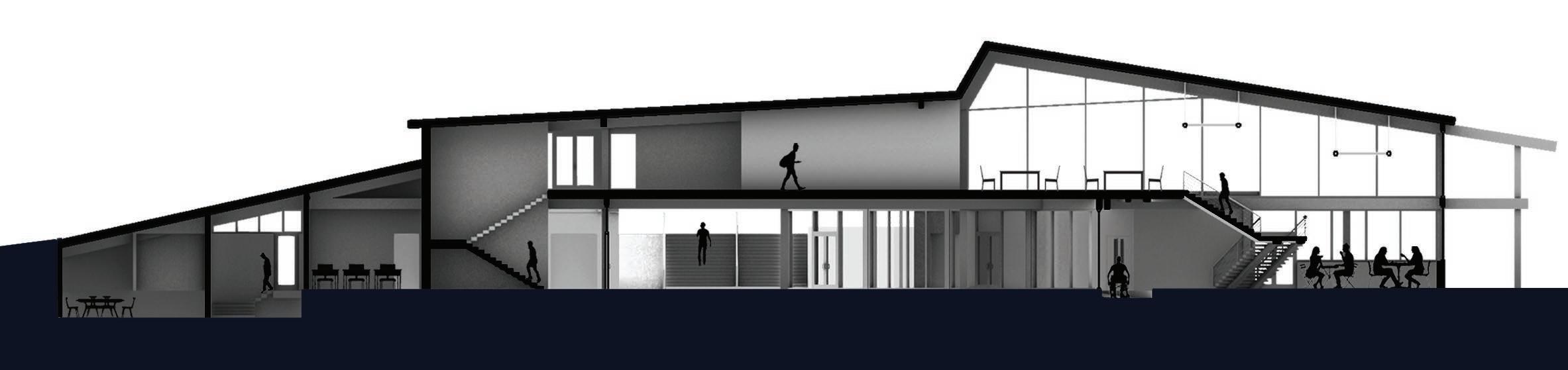 The Community Space is combined with a kitchen to be able to host community events and has the ability to open up and overlook the yard. The incorporation of a learning staircase will be an attraction for students in between classes and help grow that relationship between users and space.
