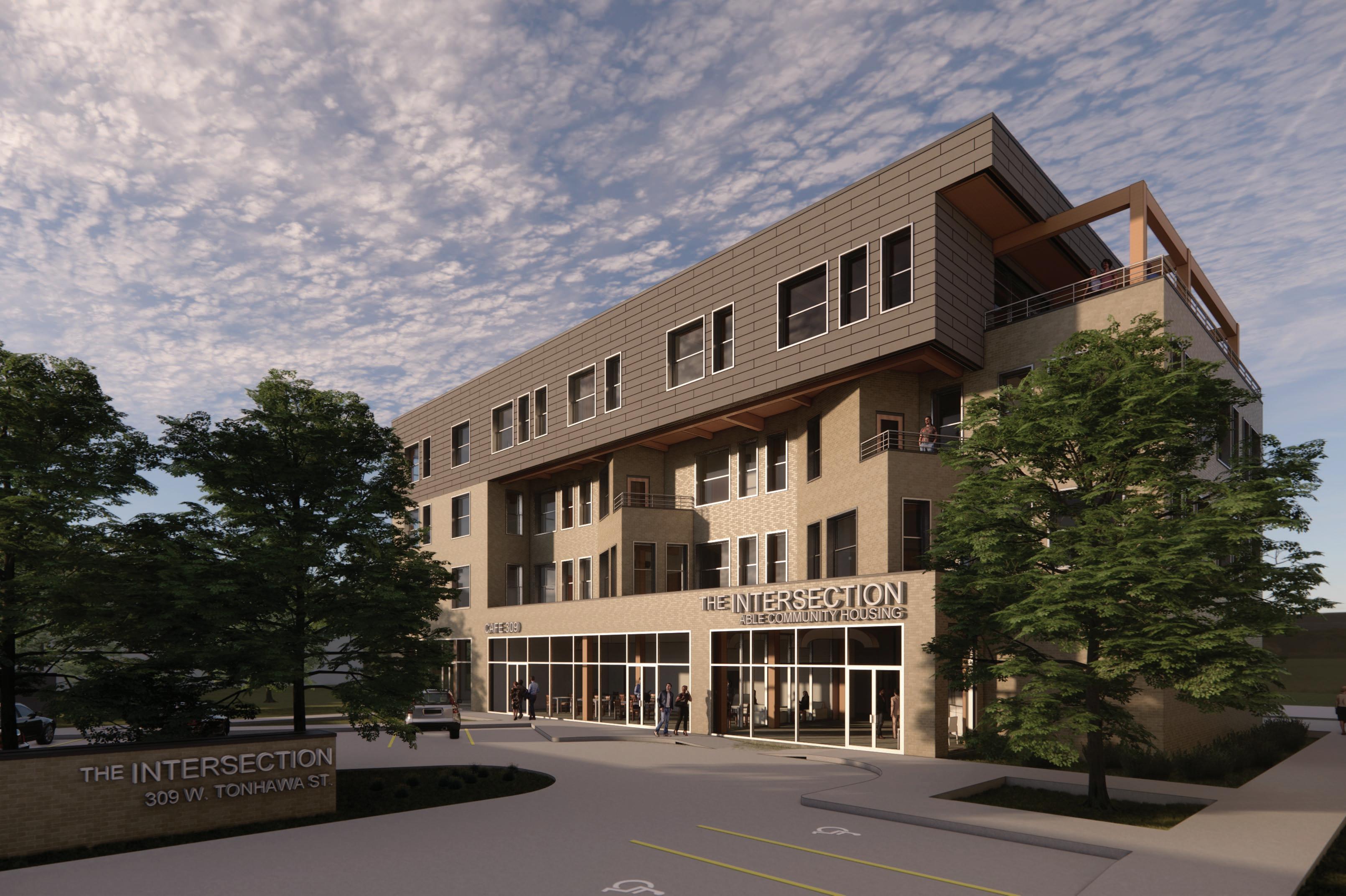 A multi-family housing project for ABLE Community-Based Services, a nonprofit located in Norman, Oklahoma with the goal to enable people with special needs to live normal lives. The design is centered around fostering community connections from Andrews Park towards the north and Downtown Norman towards the south. The mixed-use building also seeks to provide accessible and affordable housing for the organization and the surrounding neighborhood.