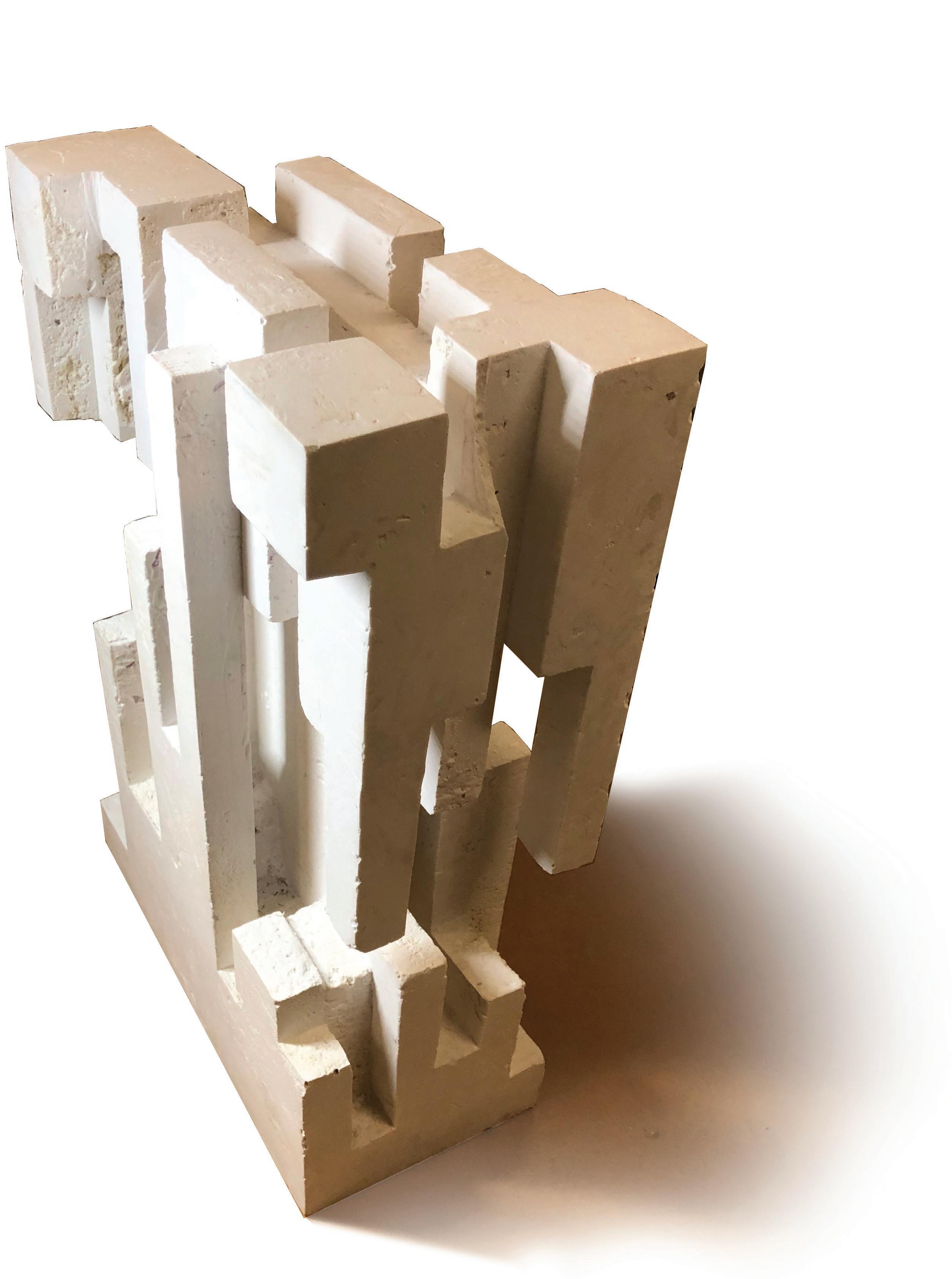 from pouring Hydro-Stone into a mold made from insulation board using proportions from the Wood Tower. Spaces were created within a 6” x 12” x 18” hydro-stone slab.
