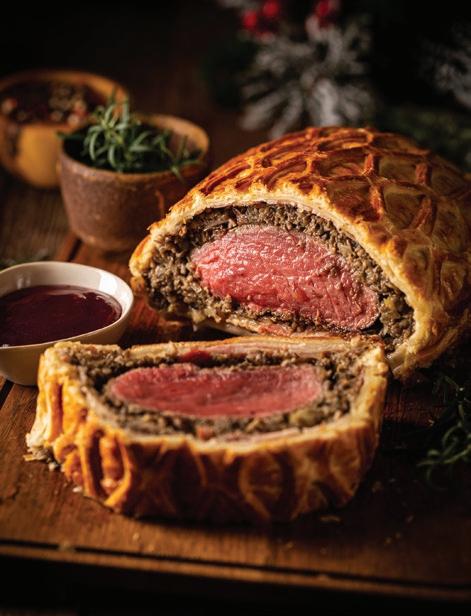 After dining at the Savoy Grill by Gordon Ramsay in London, and having the Beef Wellington for dinner, this dish quickly became one of our family's favorite traditions at Christmas. A show-stopping centerpiece for Christmas or any celebration, Beef Wellington combines tender beef, savory mushrooms, and flaky golden pastry in one unforgettable dish. No one can make it like Gordon Ramsay, but this recipe is delicious and will delight everyone sitting around the table for brunch. For that added touch, serve with a creamy red wine sauce. (Recipes on next page.)