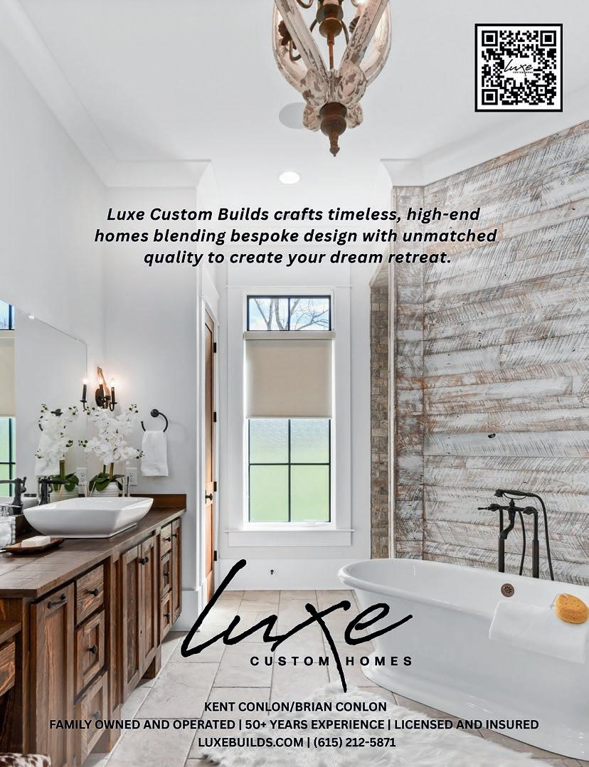 This issue’s cover story celebrates a holiday brunch, fit for a king, with all the fixings. Bon appétit! Explore how Luxe Customs Builds crafts gorgeous high-end custom living spaces perfect for your family, uncover lessons from the vine, and see how Southall is bringing back a beloved Southern tradition. Plus, get tips for a stress-free holiday, decluttering before guests arrive, and enjoy a guide to holiday happenings around Middle Tennessee. Celebrate art this holiday season at Gallery 48, and meet a new Cool Springs favorite, the Ugly Bagel, and discover the story behind their “ugly” bagels.