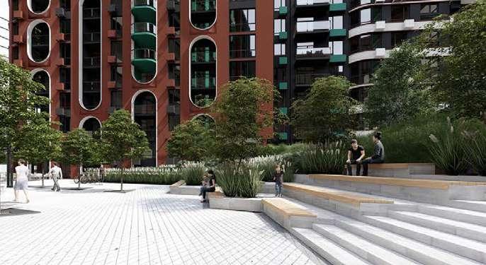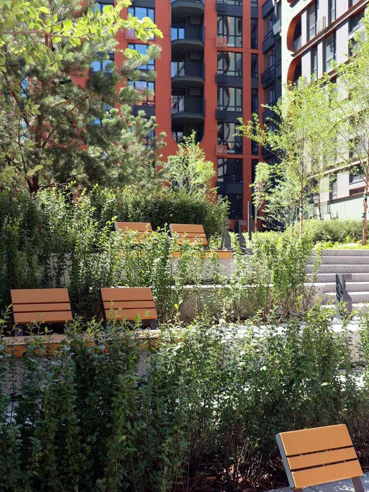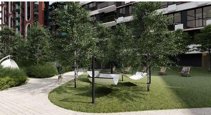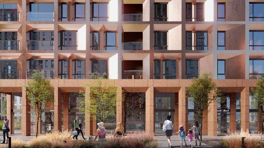 The arrangement of pedestrian and walking spaces - promenades along the canals, bringing them to the terraces of the first floors of residential buildings will create a relationship between urbanized and natural spaces
