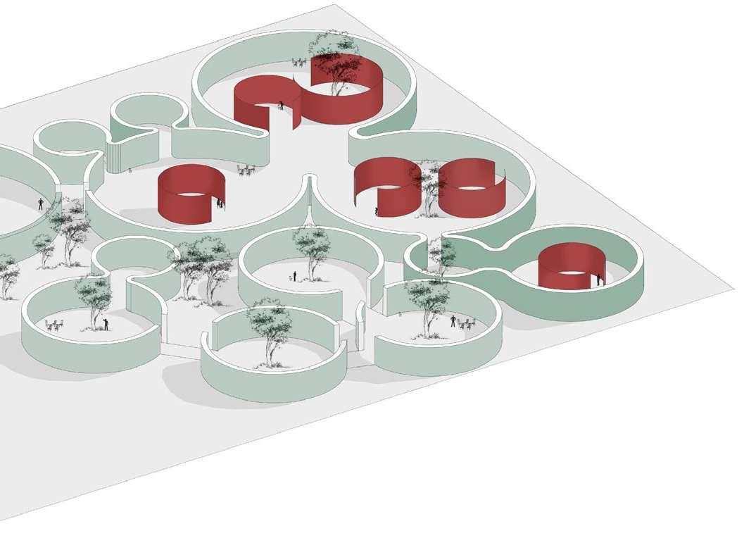 The garden includes several authentic uses: the garden of loneliness and the garden of reflection In order to achieve oneliness, in order to tru y be in yourse f and in your thoughts, space must be comp ex in plan
