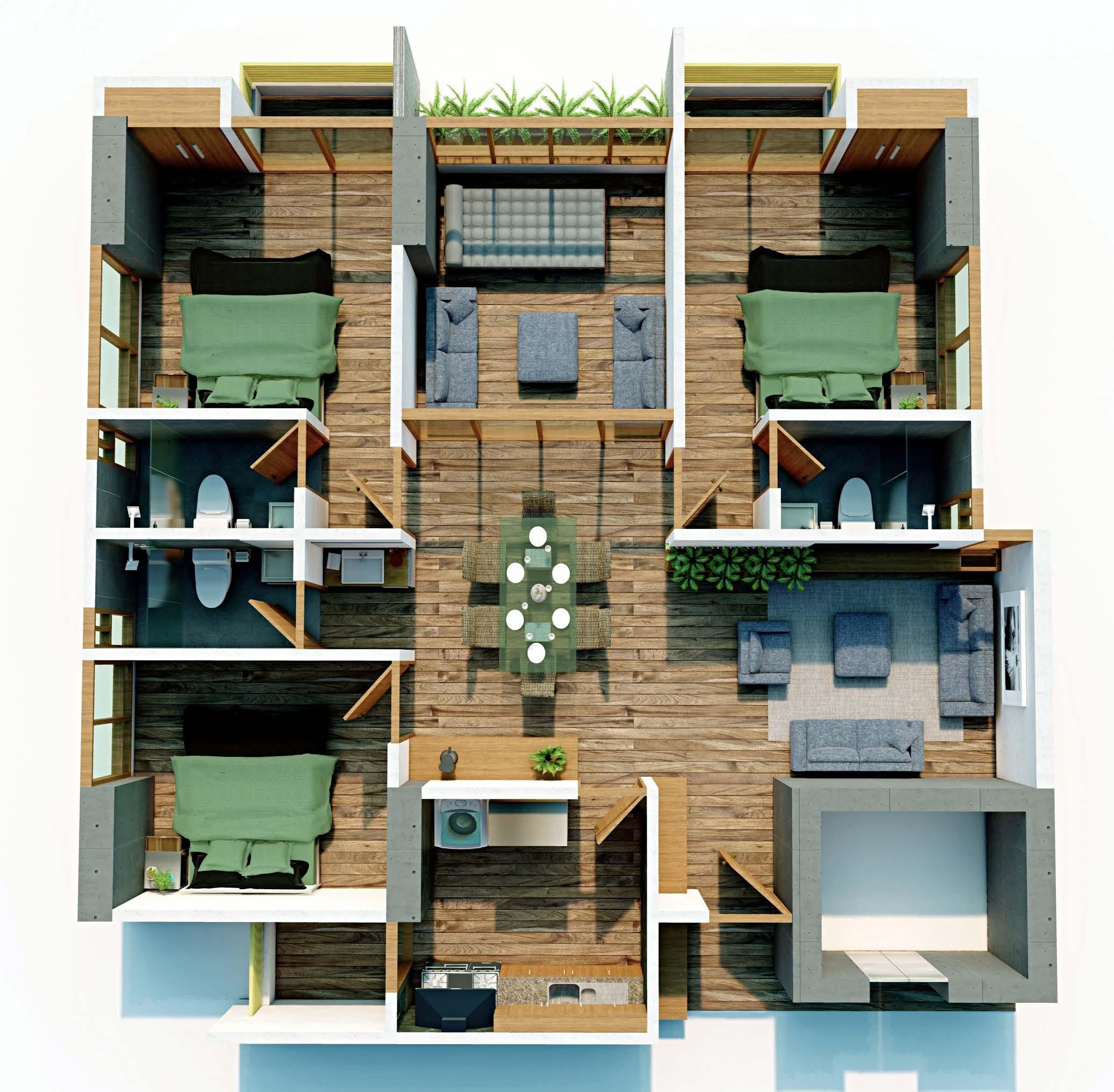 Providing sitting spaces, dedicated garden area, cloth drying provision and a BBQ area was some of the critical aspects that we had to consider during the design stage.