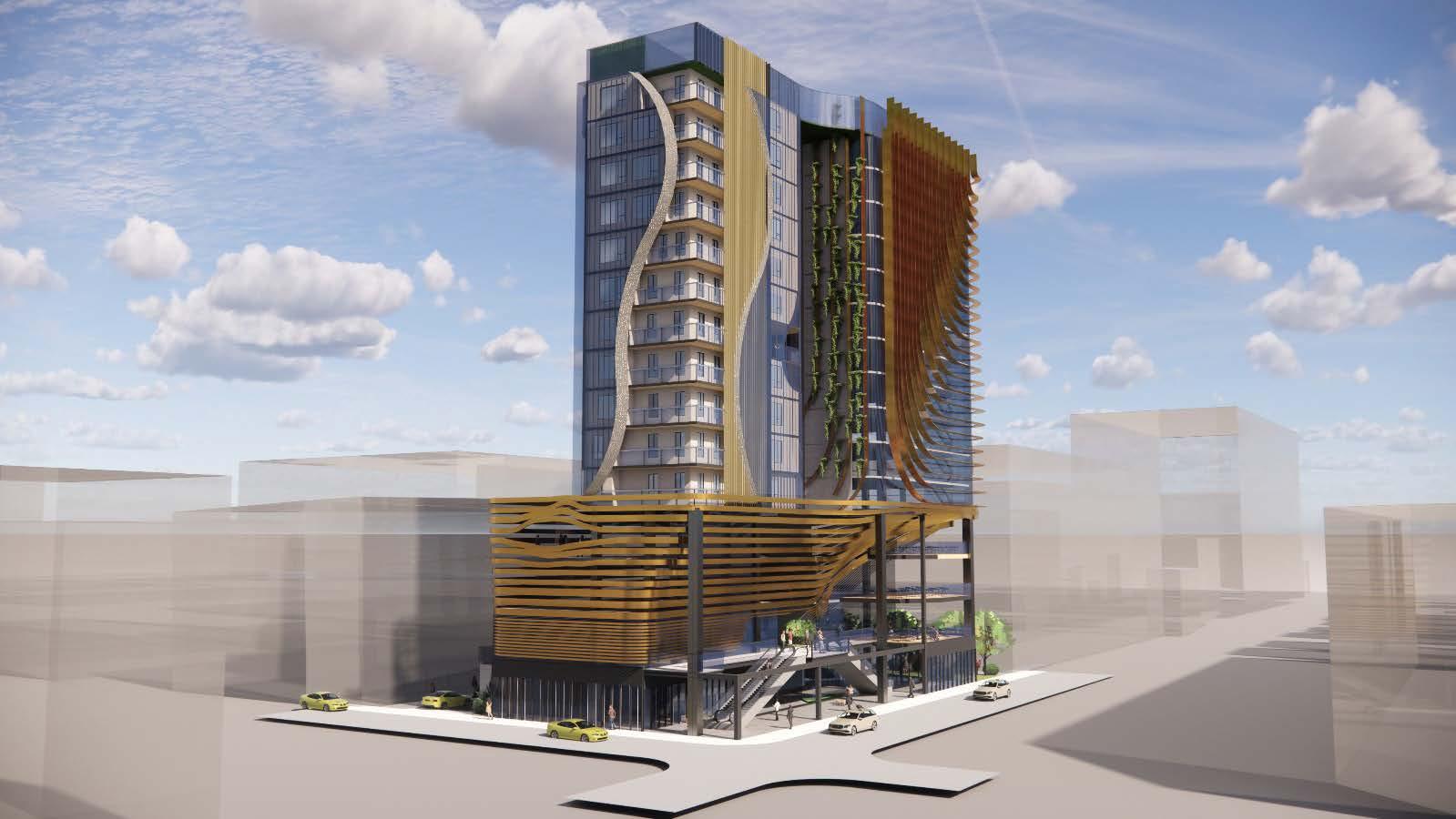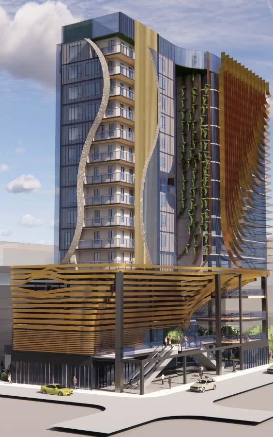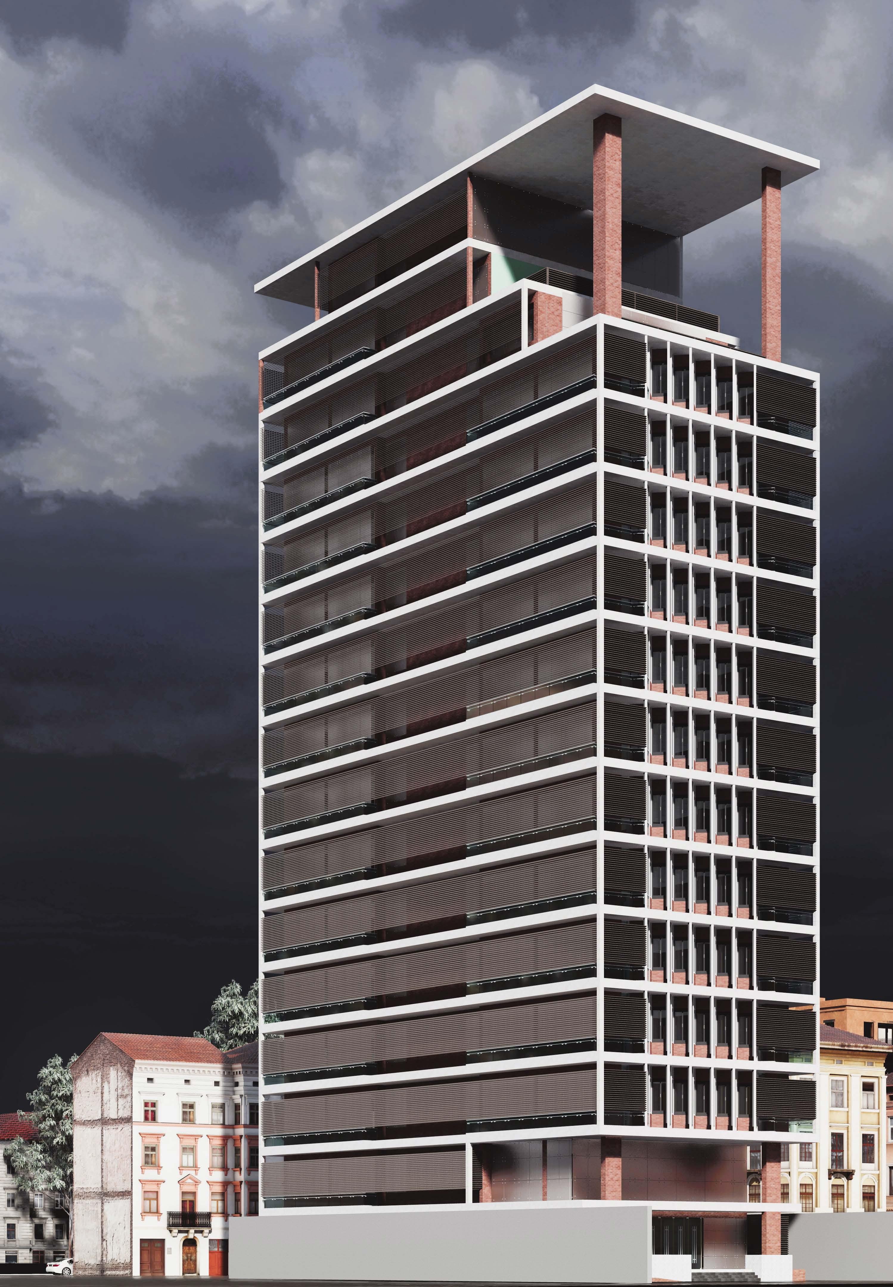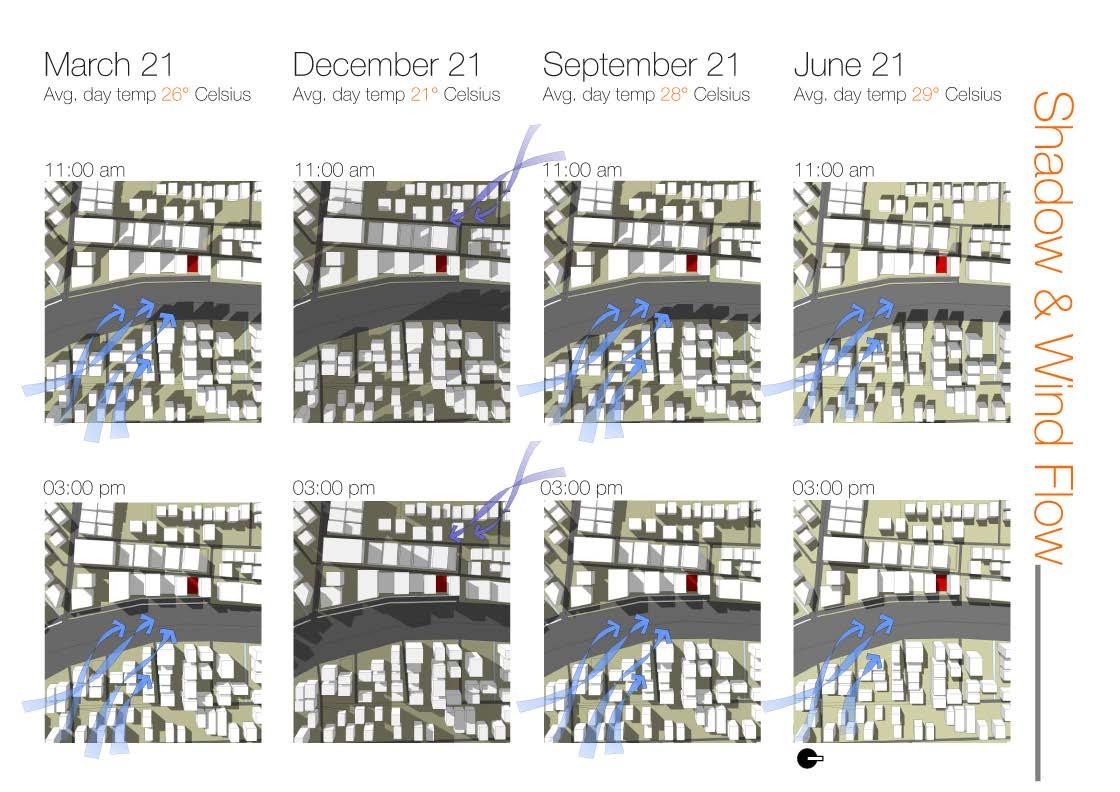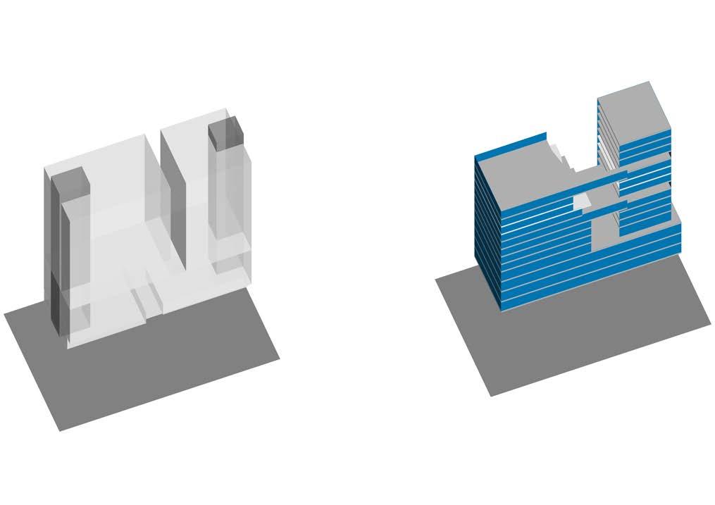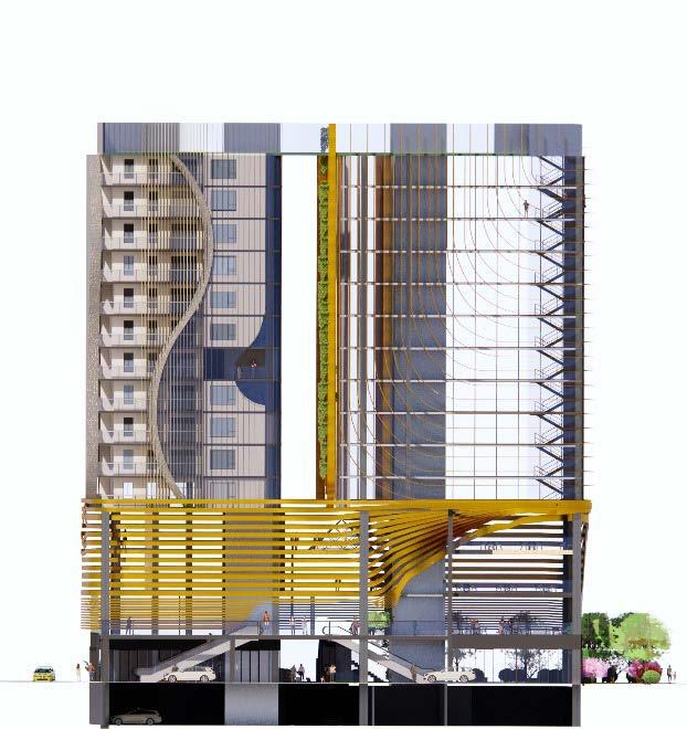 The site is located in the node of busy roads of Flinders street and pulteny street. It is a mixed used building which has a basemenmt, civic spaces on level 0-3 in the podium. Above that we spilt the bulding in two towers. One tower has apartments which has the north and east side to get light and ventilations. And the other tower has the NFP( not for profit) organiztions and commercial spaces. The void between the two towers will let throught the air from the north to avoid the lateral load also endures the the building remains cool and reduce the artificial energy. And it goes same for the light. The two towers will get lights. And the podium will be illuminated by the atrium lights coming from level 3 to level 0.
