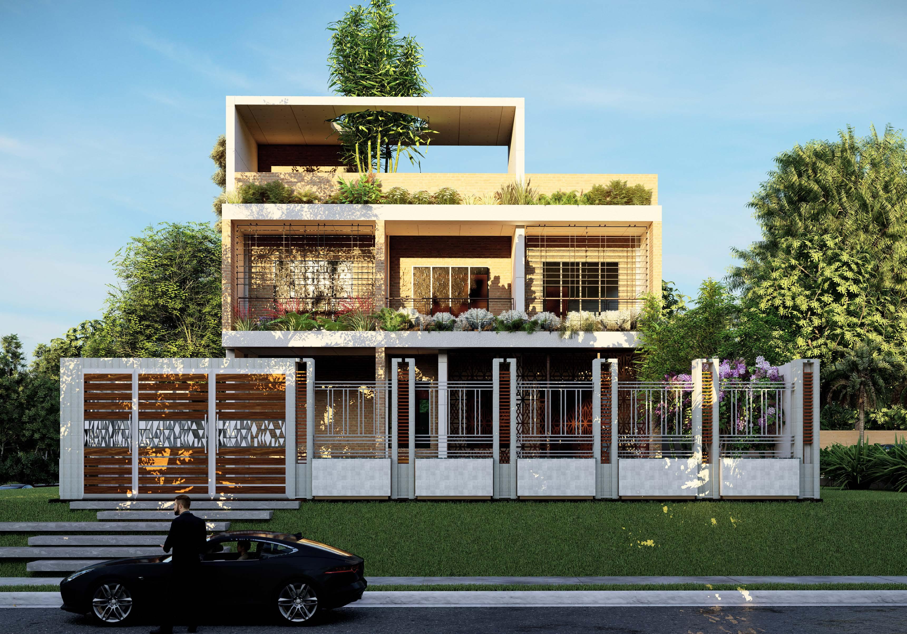An owner-occupied dwelling located in a new developed residential area (Purbachal) located within Dhaka city. The ground floor is for car parking and services. The first & second floors will be used as duplex.The upper floors will be tenant occupied. The main challenge for this project was to provide privacy between the landowner and the upper floor tenancy.