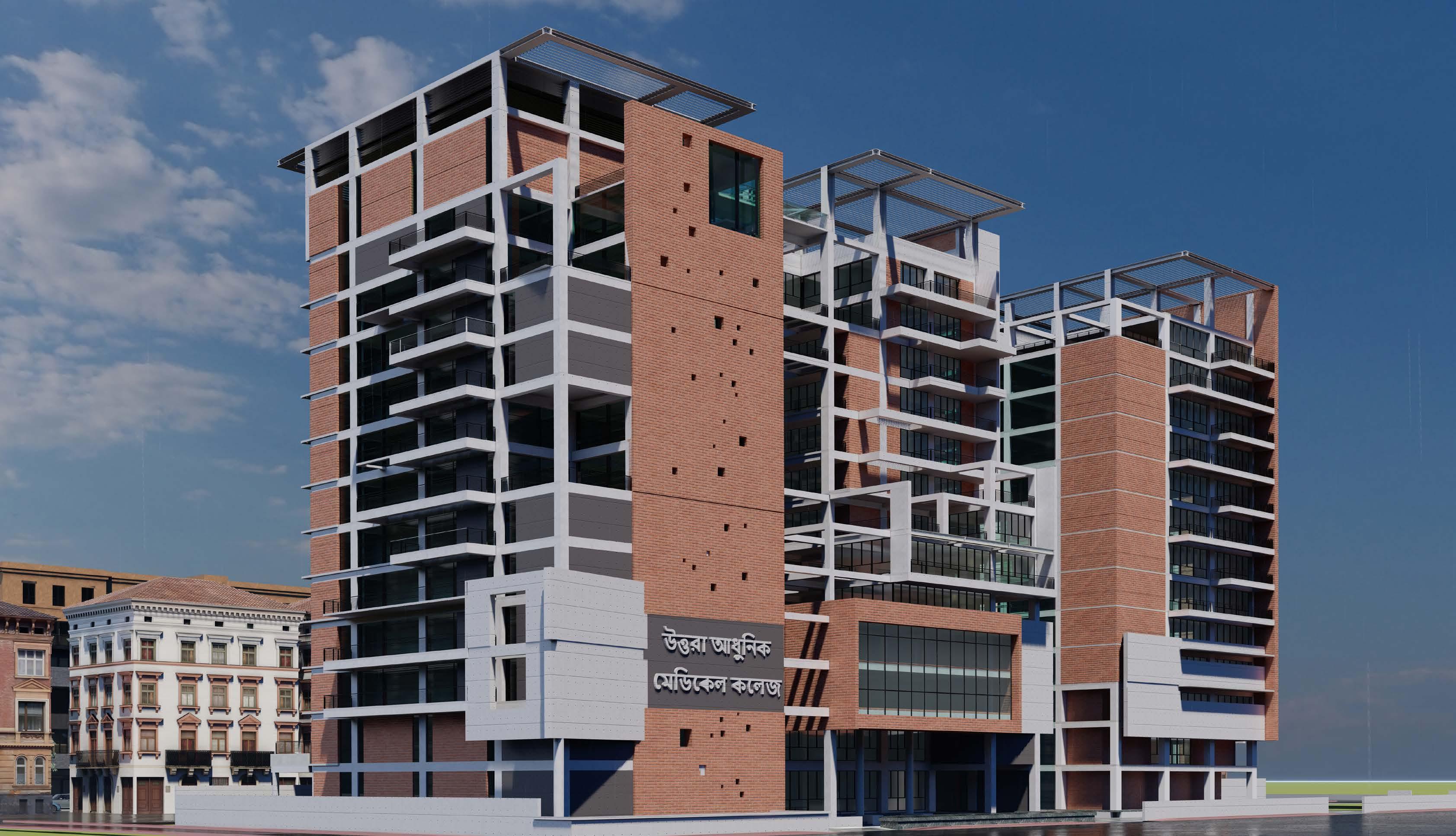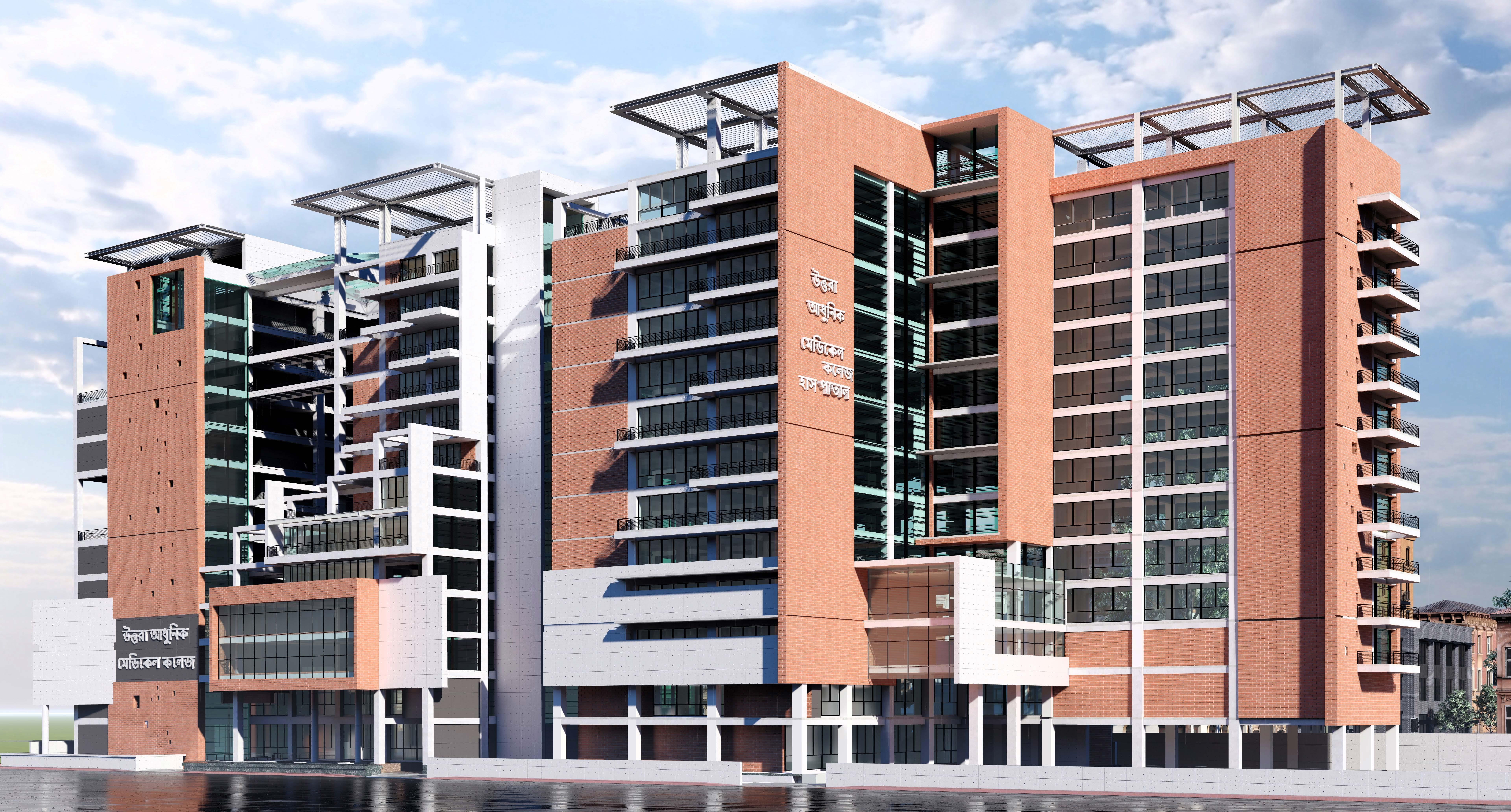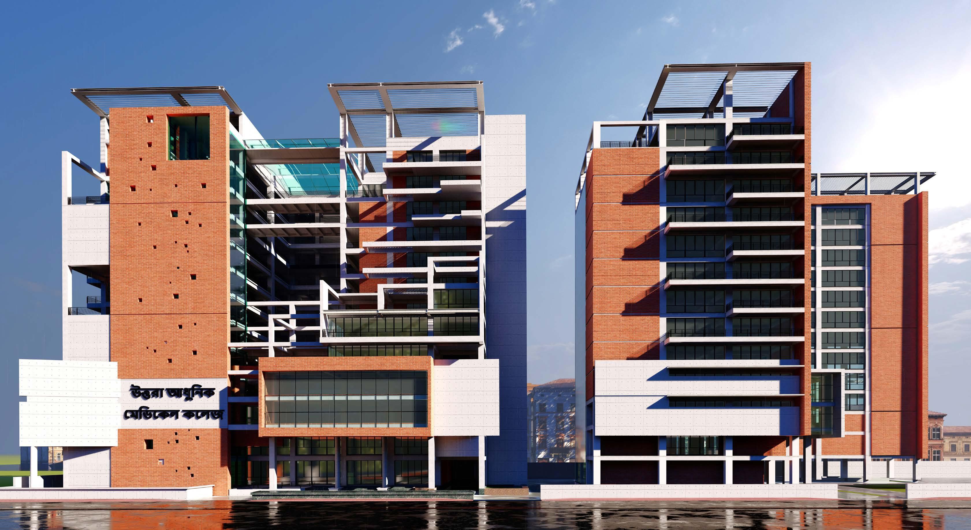 The project is an extension of an existing hospital & college building, founded in 2007. This is a landmark structure for Uttara model town (Dhaka City, Bangladesh). As an architect, the main achievement of this project was to provide a sense of being in an open space. Our project team was also responsible for providing structural and mechanical engineering solutions. .