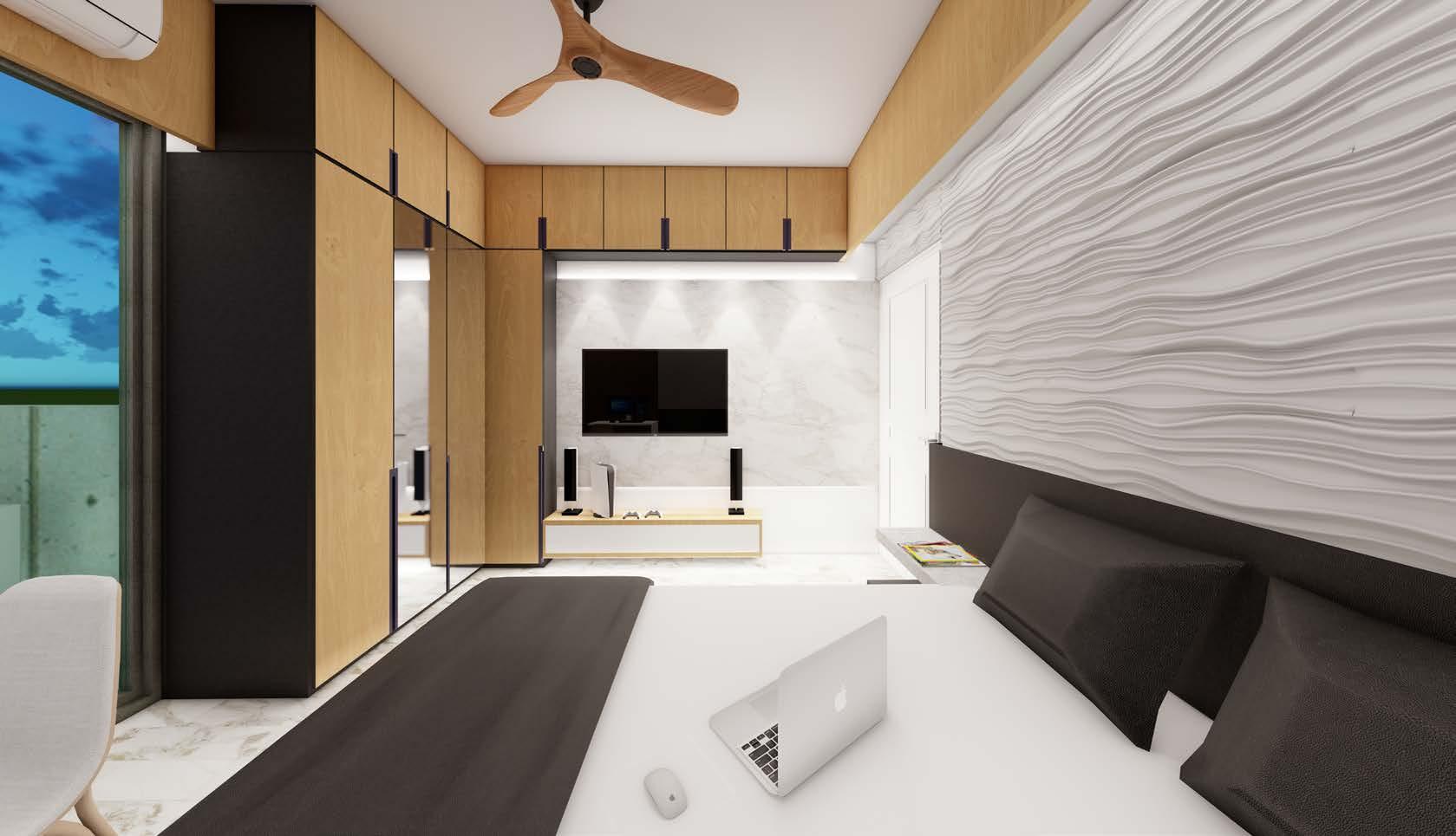 The Client gave us freedom to design his apartment within the provided fixed budget. Our proposal was to design each room with an unique theme/identity. Some of the ckient’s preference of such as the use of wooden furniture and the use of horizontal/vertical louvre panels were prioritised.