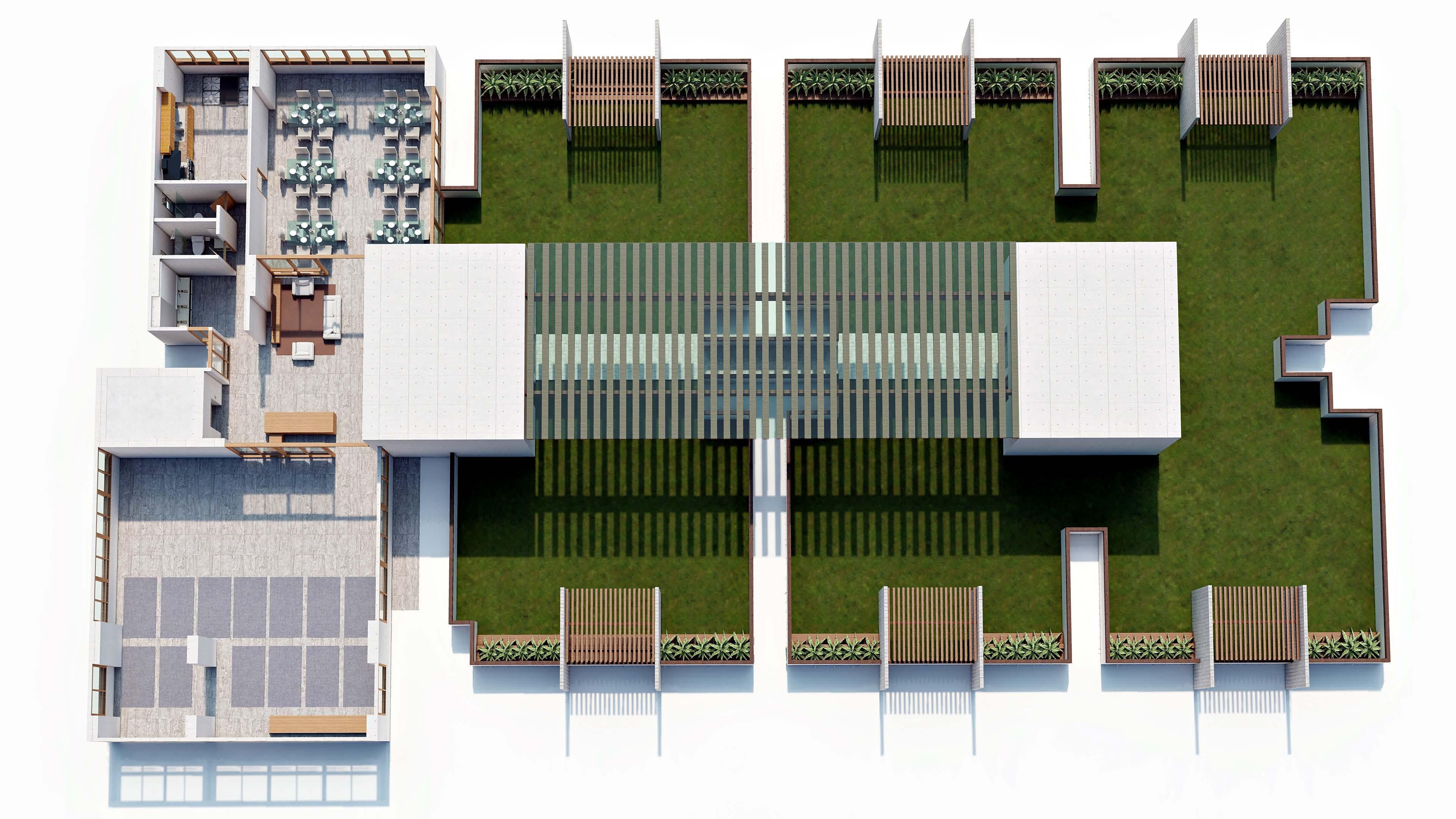 Using rooftop for gardening/landscape and entertainment is not a common design aspect for residential development for cities in Bangladesh. The restriction of Covid pandemic situation pushed the need to utilise the rooftop space as a playground and entertainment area for high-rise building development.