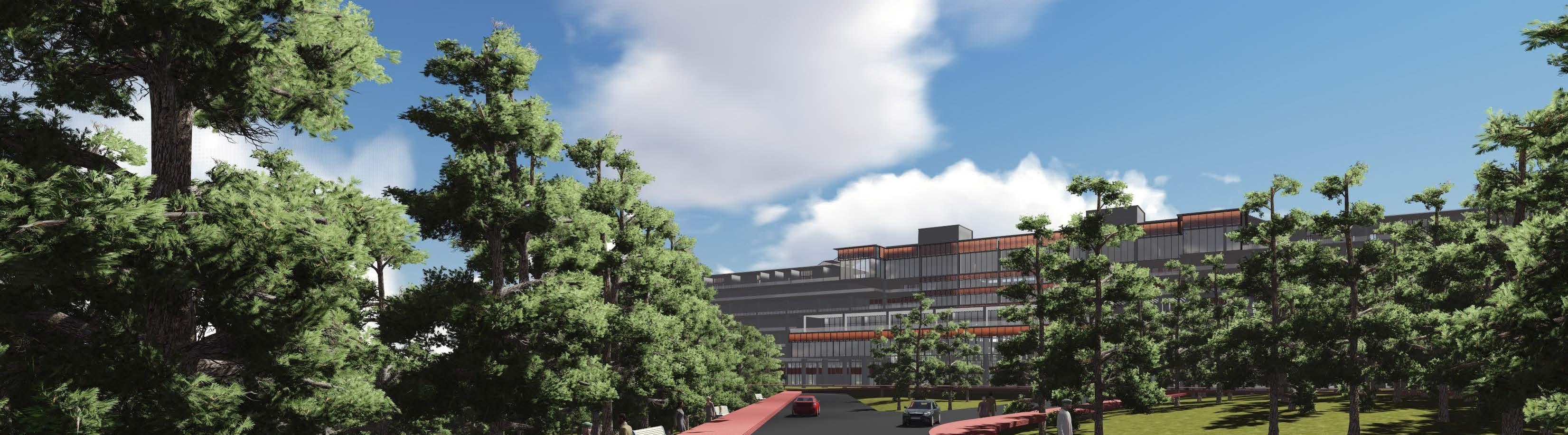 The complex has a auditorium,medical college and a dormitory for the stuff and the students.Now a hospital has been prosposed which has a 3 storied podium and two separate towers from level 4 to level 12. The aim is to provide as much open and green spaces and to provide ample natural light and ventilation througout the whole building.